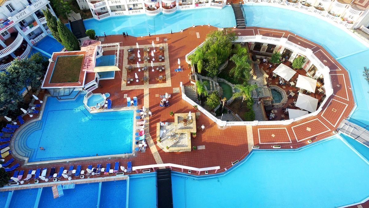 śniadanie (7.00-10.00), obiad (12.30-14.30), podwieczorek (15.30-17.30; kawa, herbata, ciastka, mini-kanapki), kolacja (19.00-21.30) w restauracji głównej, lody (10.00-23.00) w barze przy basenie, napoje bezalkoholowe i alkoholowe: gin, wódka, rum, piwo lane, wino stołowe, brandy w wyznaczonym barze (10.00-23.00); wymagane noszenie opasek all inclusive.