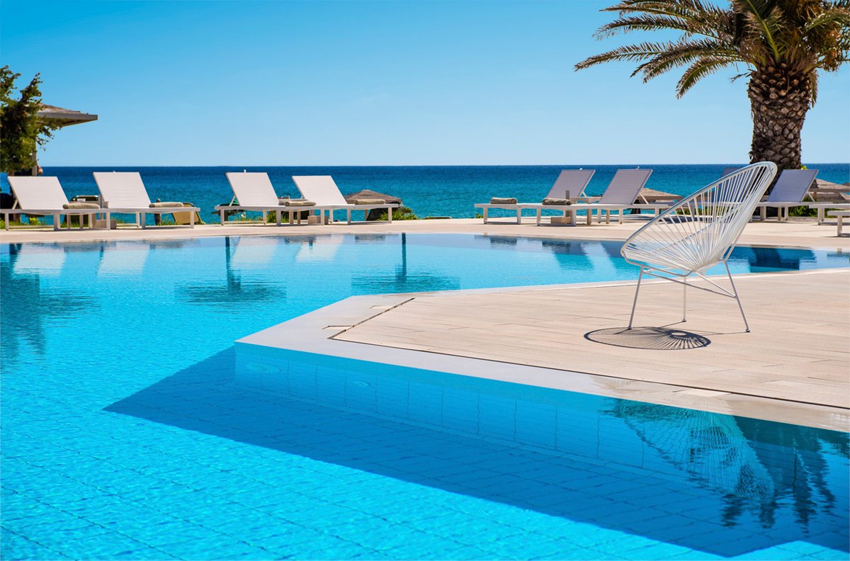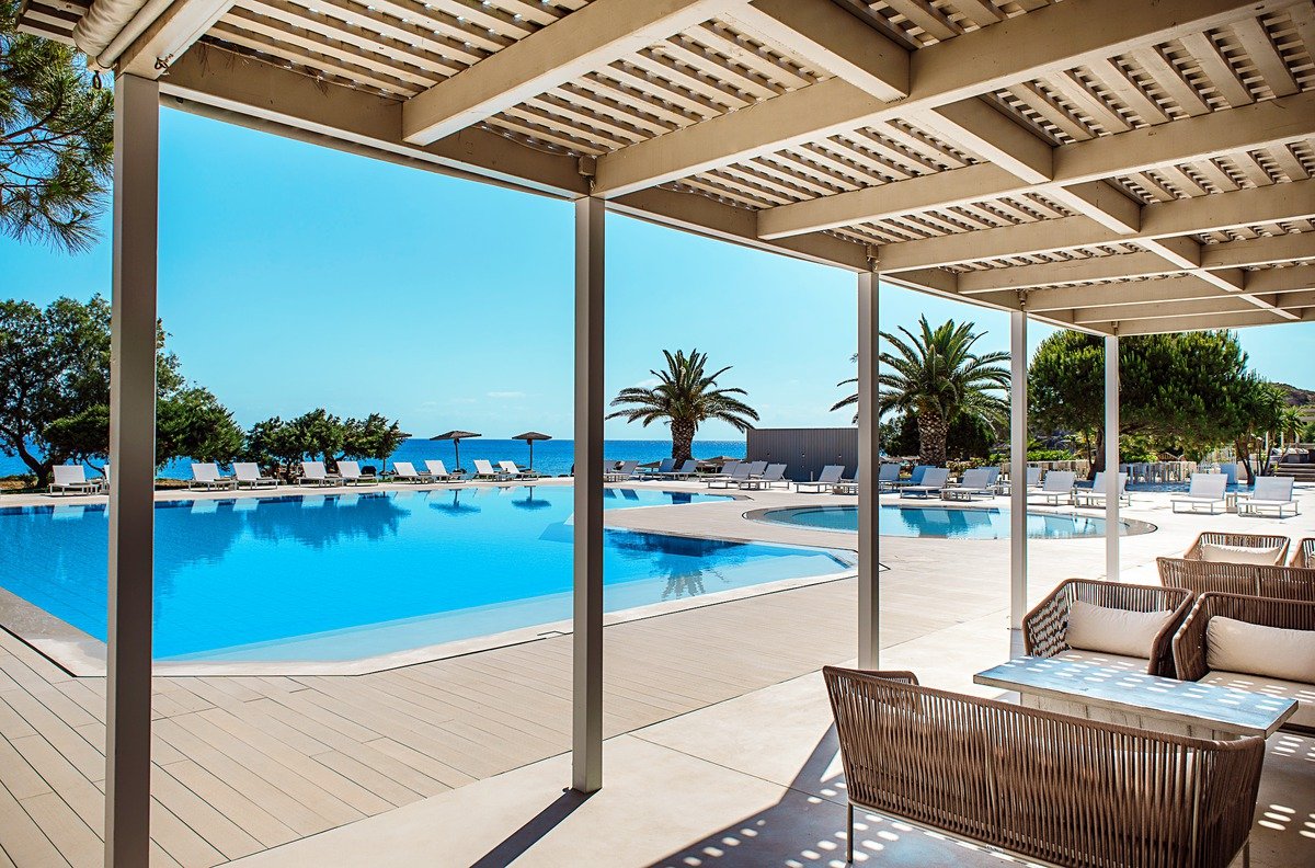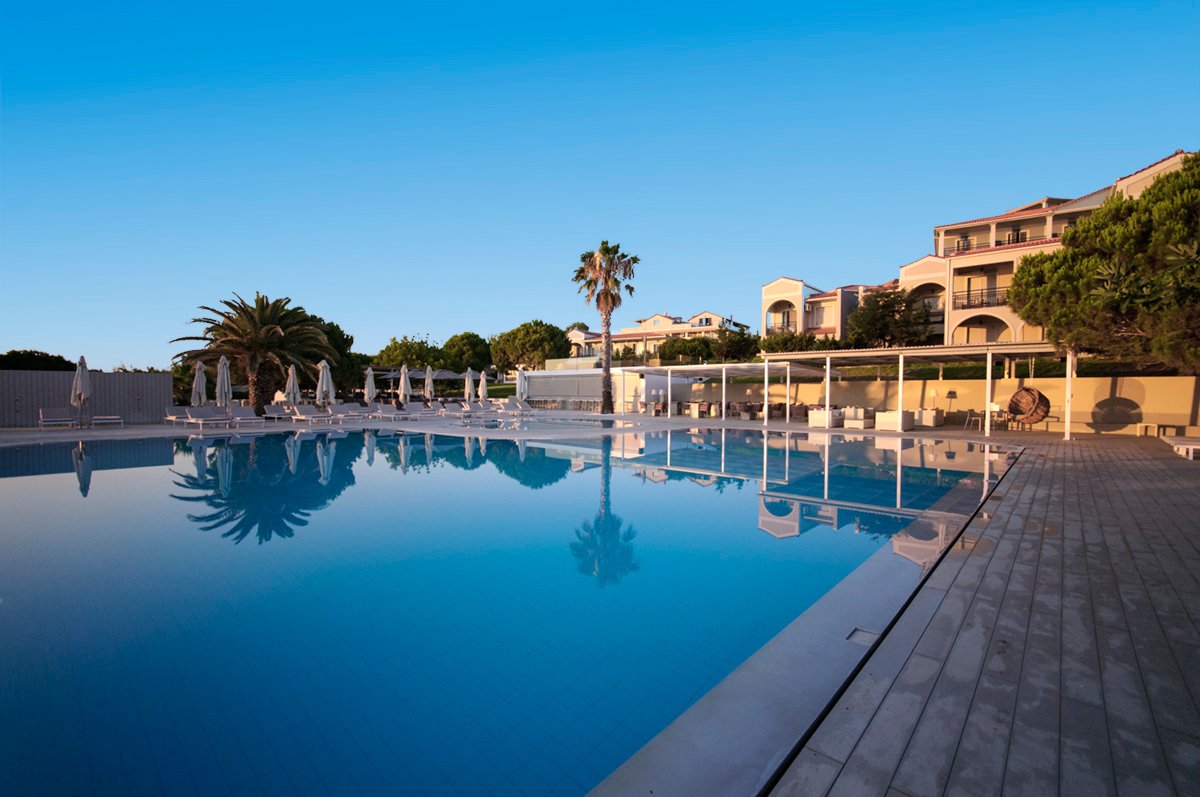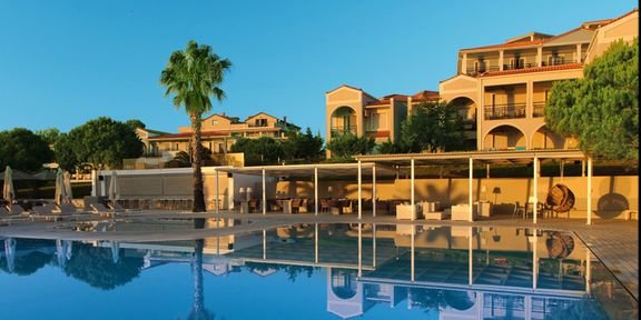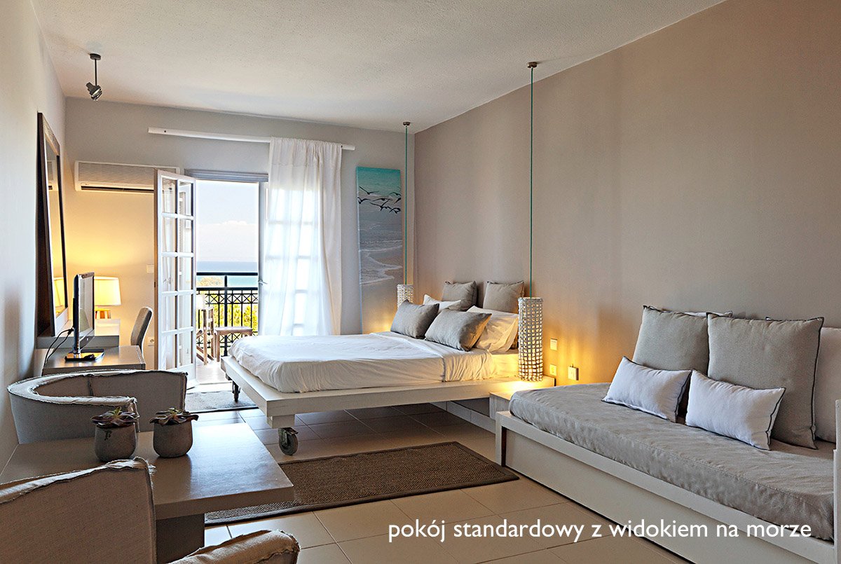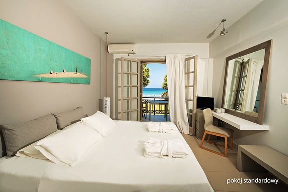 Elegancki i stylowy kompleks położony z dala od zatłoczonych kurortów, przy zatoce z prywatną, piaszczystą plażą. Oddzielona od hotelu jedynie ogrodem, łagodnie schodząca do morza, jest doskonałym miejscem zarówno na relaks na leżaku jak i wodne aktywności. W hotelu pięknie zaprojektowany, słoneczny taras z ładnym basenem i barem, w którym można coś przekąsić, lub schłodzić się popijając drinka. Komfortowe warunki wypoczynku zapewnia doskonały serwis, nowoczesne, minimalistyczne wnętrza i urządzone w jasnej kolorystyce wygodne pokoje. Dla wielbicieli aktywnego wypoczynku przygotowano 2 korty tenisowe i salę fitness, a dla wielbicieli relaksu – centrum wellness, w którym można skorzystać z odprężającego masażu. Z hotelu podziwiać można zachwycające widoki na Morze Jońskie, góry, a nawet Półwysep Peloponez.