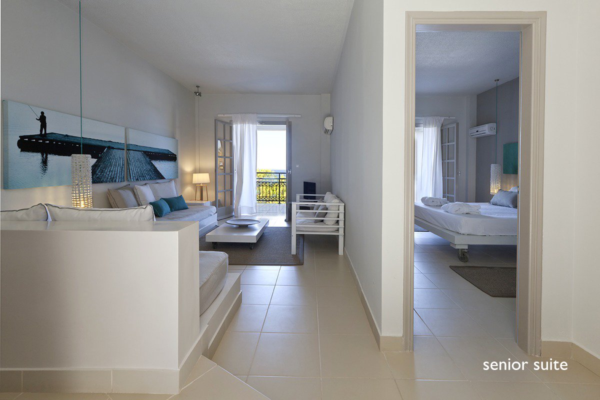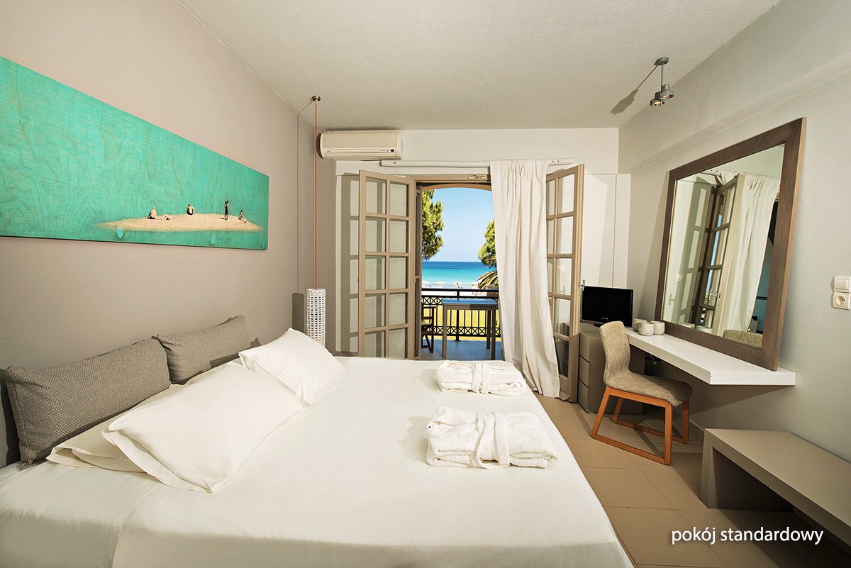 standardowy: 2-os. (możliwość 1 dostawki), ok. 25 m², elegancki, indywidualnie sterowana klimatyzacja, łazienka (wanna lub prysznic, wc; suszarka), telewizja satelitarna, telefon, sejf, mini bar (płatny); bezpłatne łóżeczko dla dziecka do 2 lat na zamówienie przed przyjazdem; balkon (stolik i krzesełka), widok na ogród; widok na morze za dopłatą; senior suite: 2-os. (możliwość 1 lub 2 dostawek dla dzieci), ok. 40 m², pokój dzienny i sypialnia, wyposażenie jak w pokoju standardowym, dodatkowo szlafrok i kapcie, internet bezprzewodowy, zestaw do kawy/herbaty; widok na ogród; widok na morze za opłatą; senior suite za dopłatą.