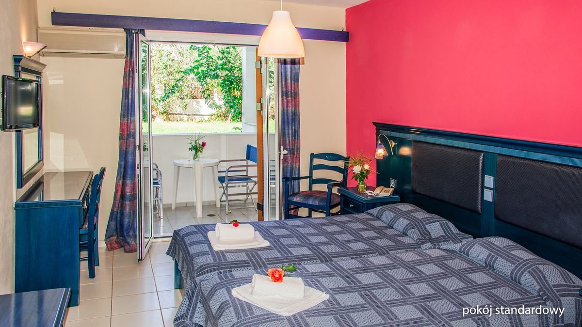 standardowy: 2-os. (możliwość 1 dostawki), ok. 20 m², indywidualnie sterowana klimatyzacja, łazienka (wanna, wc; suszarka), internet bezprzewodowy, telewizja satelitarna, telefon, sejf, lodówka; bezpłatne łóżeczko dla dziecka do 2 lat na zamówienie przed przyjazdem; balkon lub taras (stolik i krzesełka), widok na ogród; boczny i frontalny widok na morze za dopłatą.