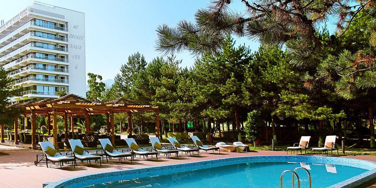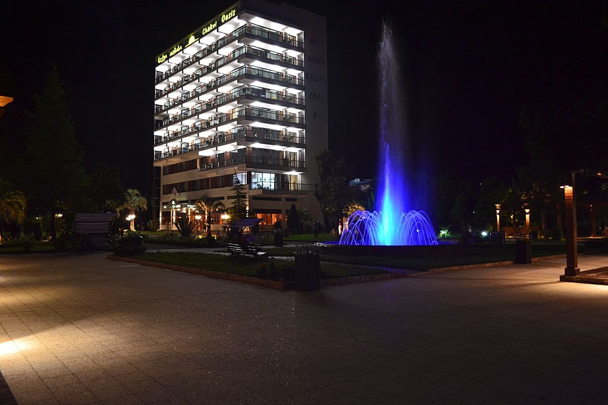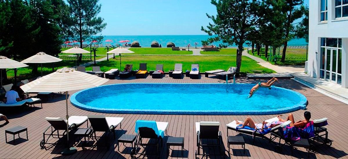 Położony w spokojnym miejscu, w przyjemnej, rozwijającej się nadmorskiej miejscowości Chakvi to znakomite miejsce na relaks i aktywne wakacje. Hotel leży nad samym morzem, przy jednej z najlepiej zagospodarowanych plaż regionu, gdzie skorzystać można z oferty sportów wodnych. Na miejscu, do dyspozycji Gości są wszystkie wygody: otoczony eukaliptusami basen w ogrodzie, a także kryty basen, kort tenisowy, centrum wellness. Do wyboru są aż 4 bary! Dyskoteka, karaoke i animacje to wspaniała okazja do wspólnej zabawy. Na najmłodszych turystów czeka plac zabaw i miniklub. Z uwagi na standard, serwis i wyposażenie hotel często gości konferencje.