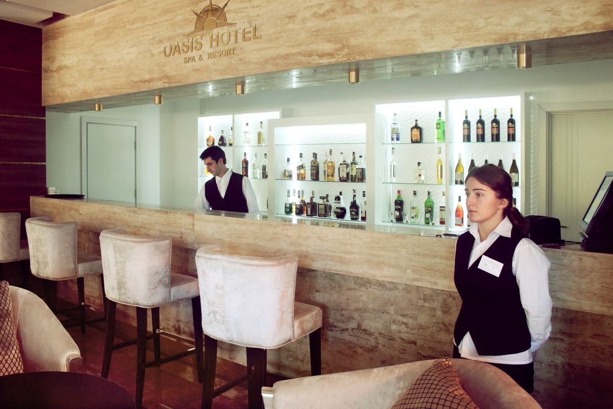 czterogwiazdkowy, nowoczesny i zadbany, odnawiany, 3 budynki: 2, 4 i 9 pięter, 155 pokoi, windy, przestronne lobby, całodobowa recepcja, restauracja główna z tarasem – kuchnia międzynarodowa; lounge bar czynny całą dobę, bar przy basenie, bar Manhattan, bar przy plaży – bary otwarte w zależności od ilości gości; 3 sale konferencyjne dla maks. 400 osób, taras z widokiem na morze, mały ogród, przechowalnia bagażu; za opłatą: room-service, sejf (wymagana kaucja), opiekunka do dziecka (na zamówienie przed wyjazdem), pralnia, wypożyczalnia samochodów; akceptowane karty kredytowe: Visa, MasterCard, American Express.