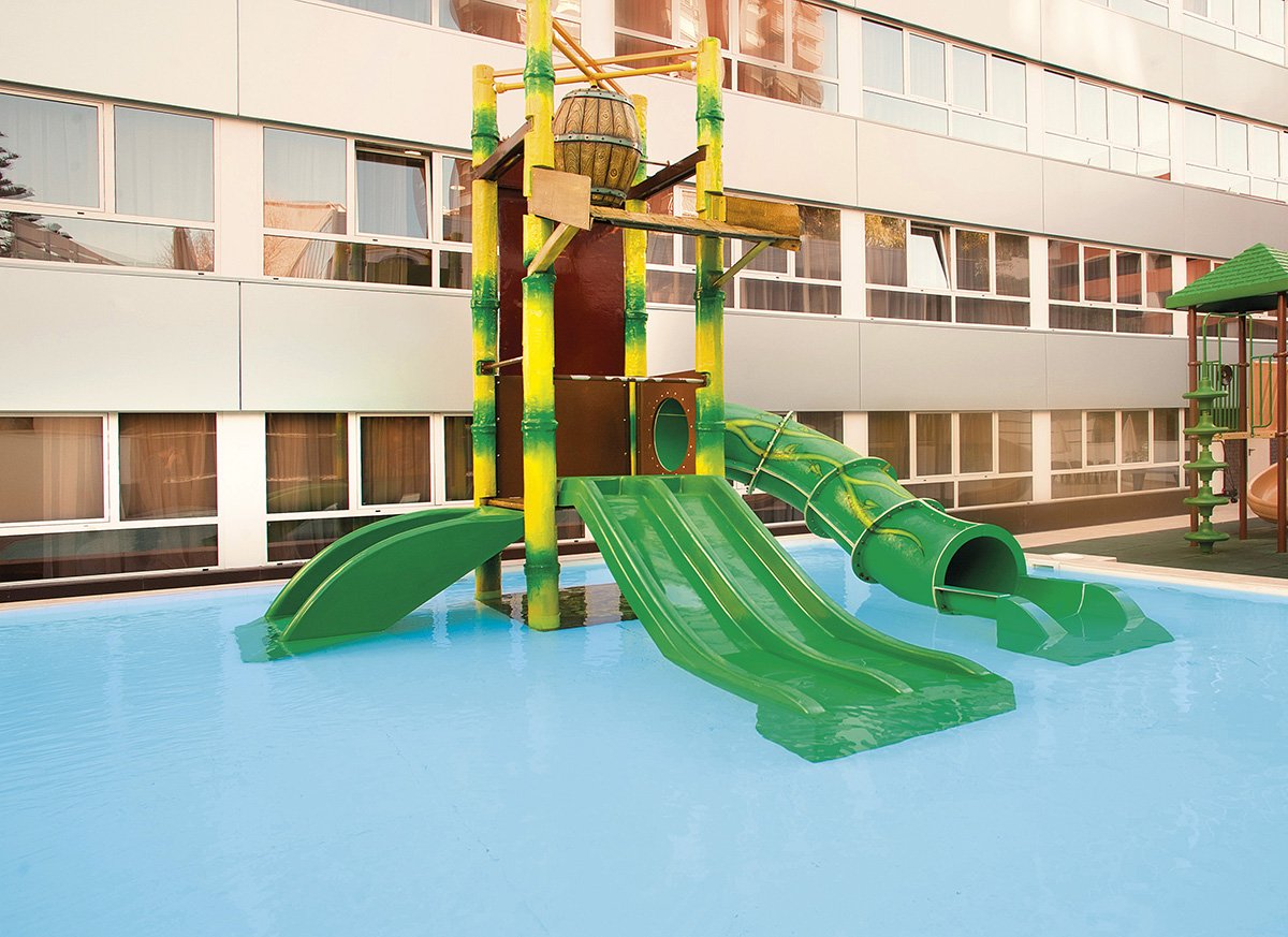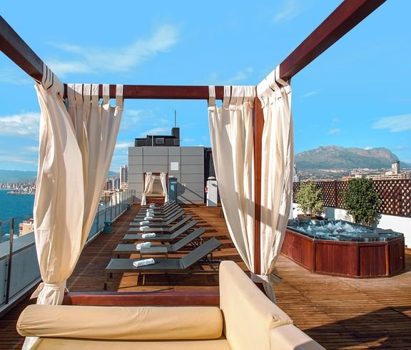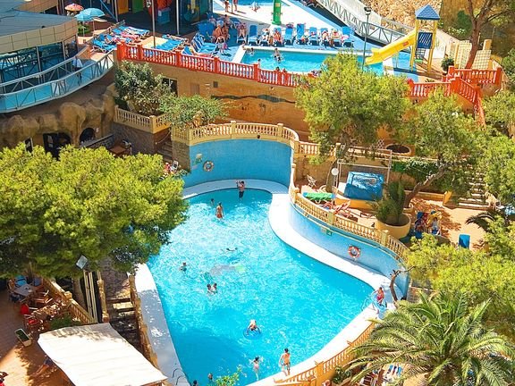 basen, prostokątny kształt, słodka woda, ok. 150 m², miniaquapark, basen, nieregularny kształt, słodka woda, ok. 250 m², brodzik dla dzieci ze zjeżdżalniami (dostępne dla dzieci powyżej 120 cm wzrostu), słodka woda, przy basenie bezpłatne parasole i leżaki; plac i pokój zabaw dla dzieci, miniklub (4-12 lat), animacje dla dorosłych i dzieci; sauna, siłownia, bilard, gry planszowe, sporty wodne w centrum Benidorm.