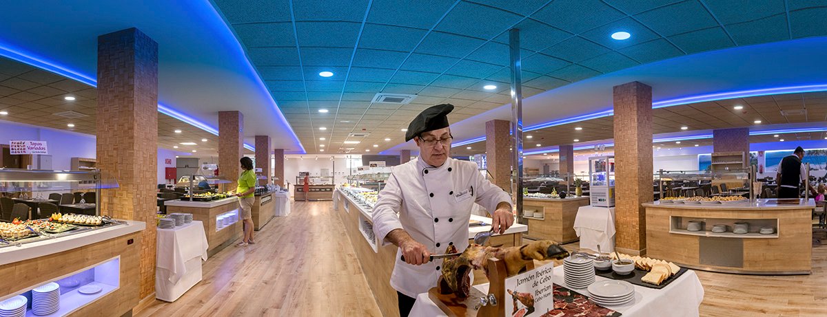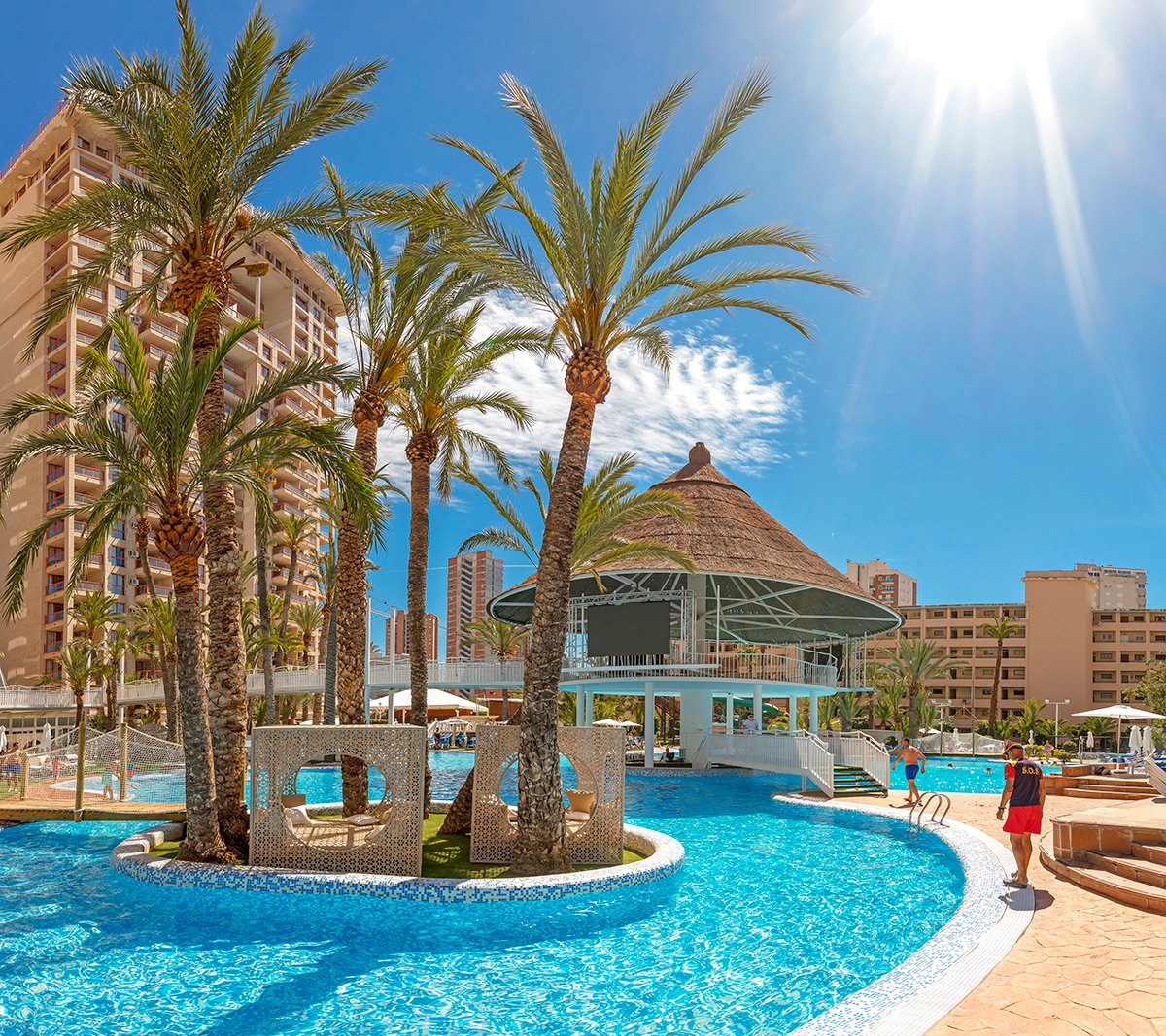 trzygwiazdkowy, zbudowany w 1990 r., częściowo odnowiony w 2017 r. (apartamenty - elementy wyposażenia, restauracja, miniklub, pokój gier, nowy park wodny), 326 pokoi, dwa budynki, 24 piętra, 12 wind, przestronny hol, całodobowa recepcja, restauracja Destellos – dania w formie bufetu, dostępne foteliki i menu dla dzieci, kuchnia hiszpańska i międzynarodowa, dania wegetariańskie; 6 barów, w tym 1 przy basenie; sala konferencyjna, internet bezprzewodowy; występują różnice poziomów; akceptowane karty kredytowe: Visa, MasterCard.
