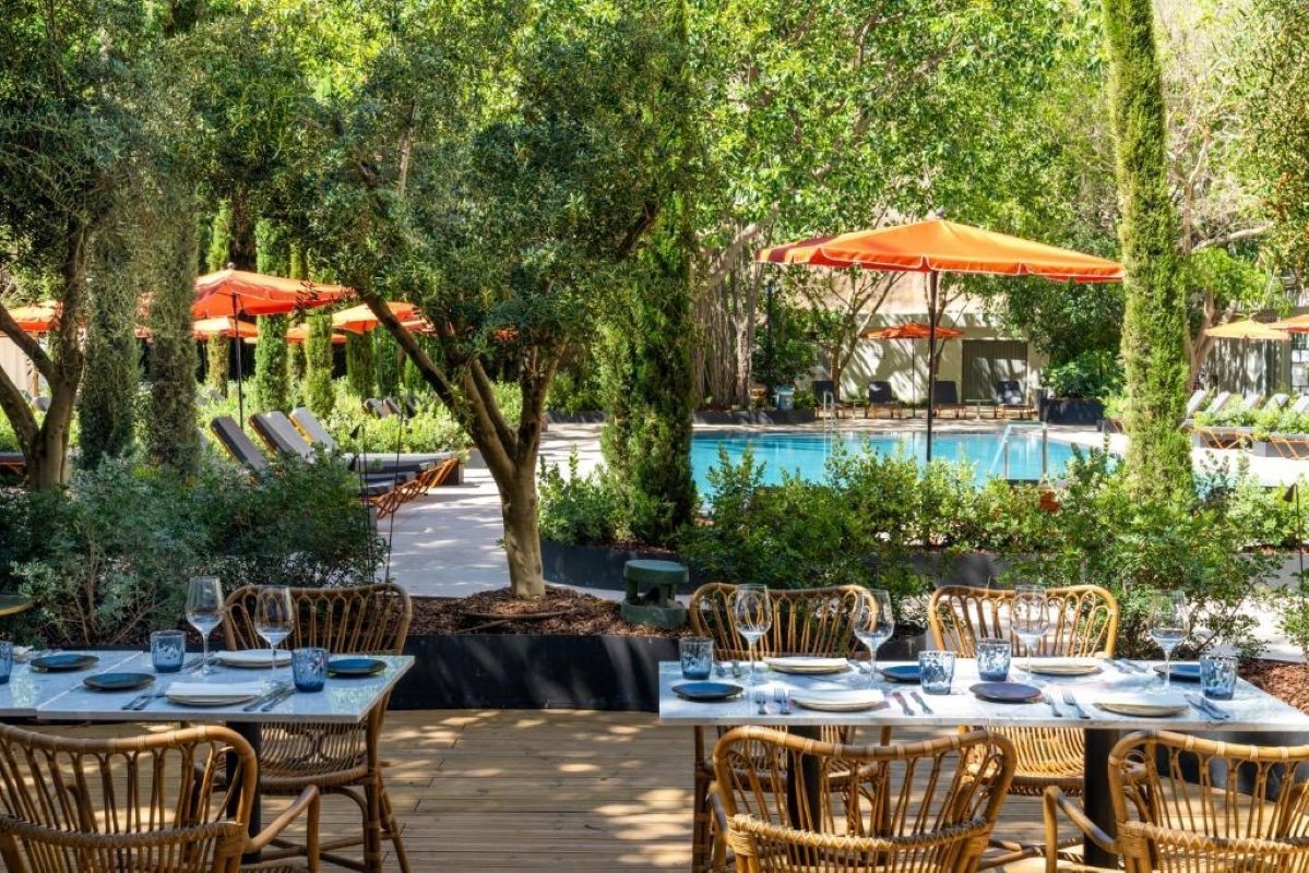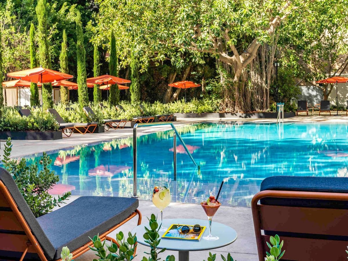 przy basenie bezpłatne parasole, leżaki i łóżka balijskie