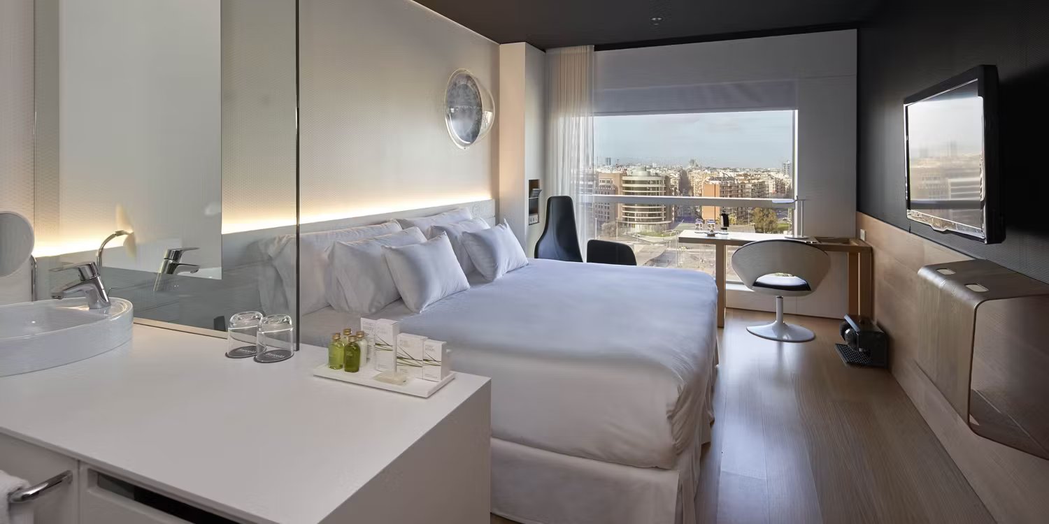 Wspaniała oferta dla osób lubiących spędzać urlop w mieście – bagatela – w samej Barcelonie! Położenie hotelu w centrum tętniącego życiem miasta, zaledwie 6 km od słynnego deptaku La Rambla, blisko stacji metra, w sąsiedztwie stadionu Camp Nou, zachęca do wypoczynku miłośników Gaudiego i „Cienia wiatru” Zafona. Dwie restauracje zapraszają na degustację dań kuchni międzynarodowej i mercado, a świetnie wyposażone i stylowo urządzone pokoje, z których roztacza się spektakularny widok na miasto, pozwolą na wygodny wypoczynek.