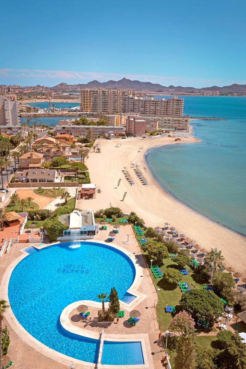 ok. 600 m od centrum LA MANGA DEL MAR MENOR, sklepy, bary i restauracje przy hotelu, przy drodze lokalnej, ok. 600 m od przystani, ok. 1,3 km od Peke Park, ok. 4,6 km od Latarni Morskiej, ok. 37 km od Kartageny; ok. 125 km od portu lotniczego w Alicante; przystanek autobusowy ok. 100 m od hotelu (ok. 1,2 EUR/do 20 km po Półwyspie La Manga).