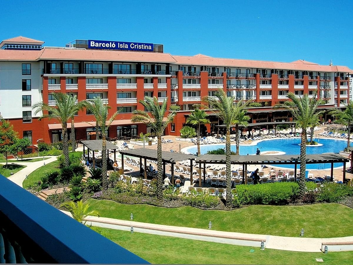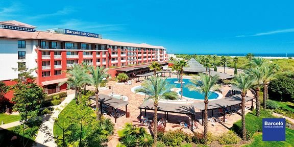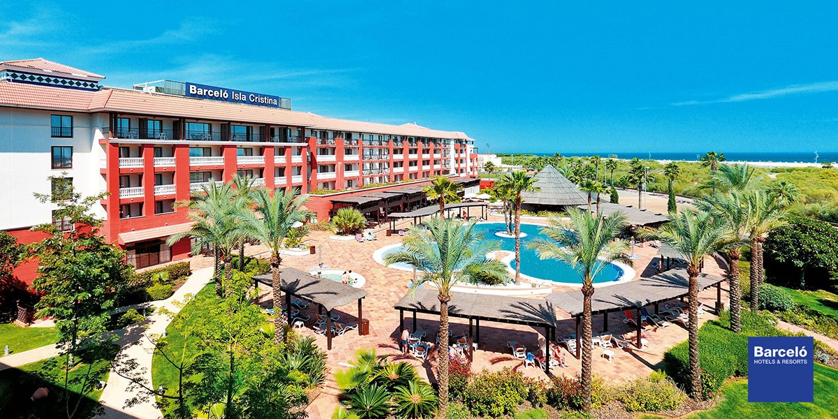 w miejscowości ISLA CRISTINA, ok. 300 m od centrum z pięknymi uliczkami i domami wykładanymi ceramiką, sklepów, restauracji i barów; ok. 75 km od portu lotniczego w Faro; przystanek autobusowy ok. 600 m od hotelu.