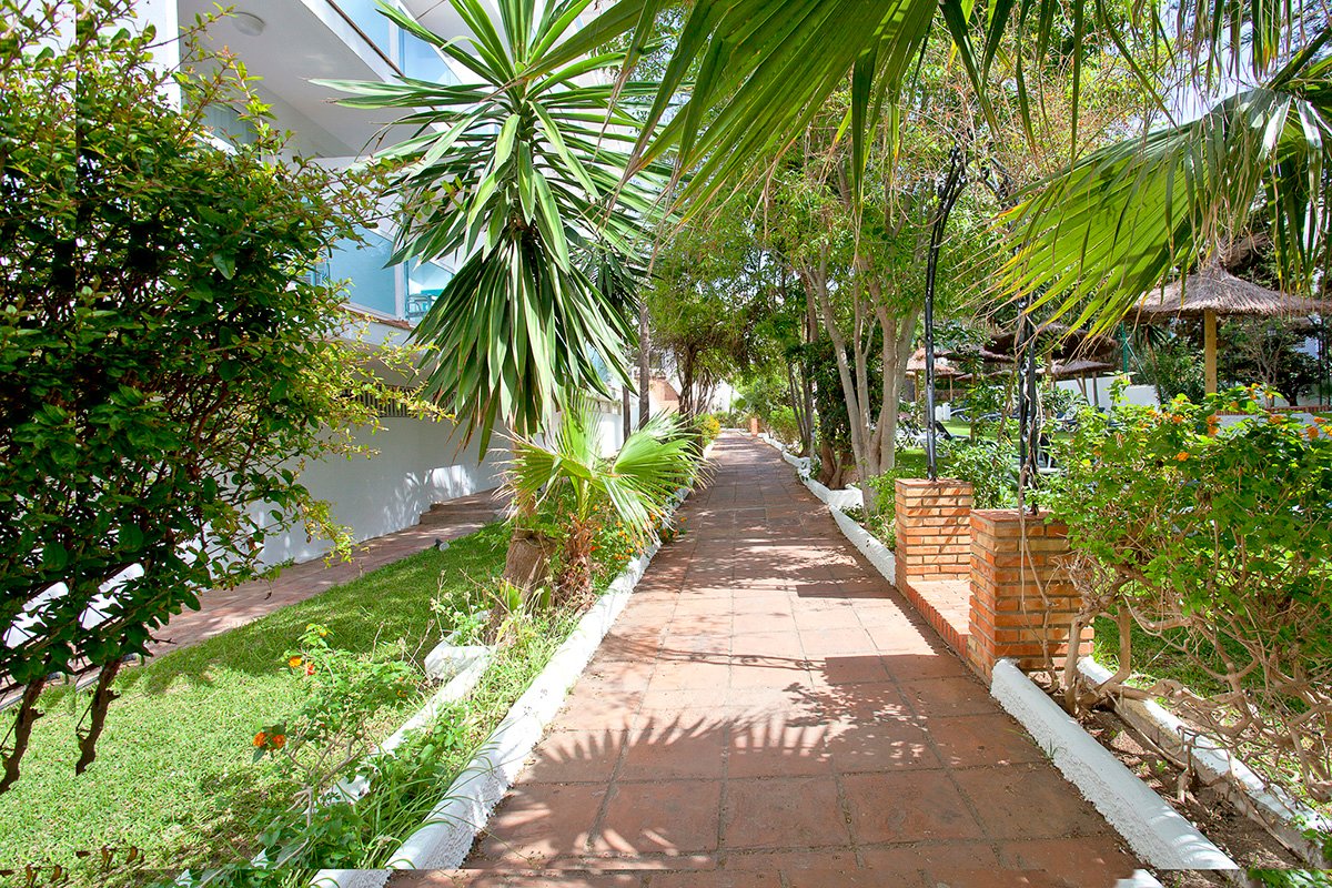 Carihuela, publiczna, piaszczysta, ciemny piasek, łagodne zejście do morza, ok. 350 m od hotelu, przejście przez ulicę i nadmorską promenadę, parasole i leżaki płatne (ok. 14 EUR/komplet).