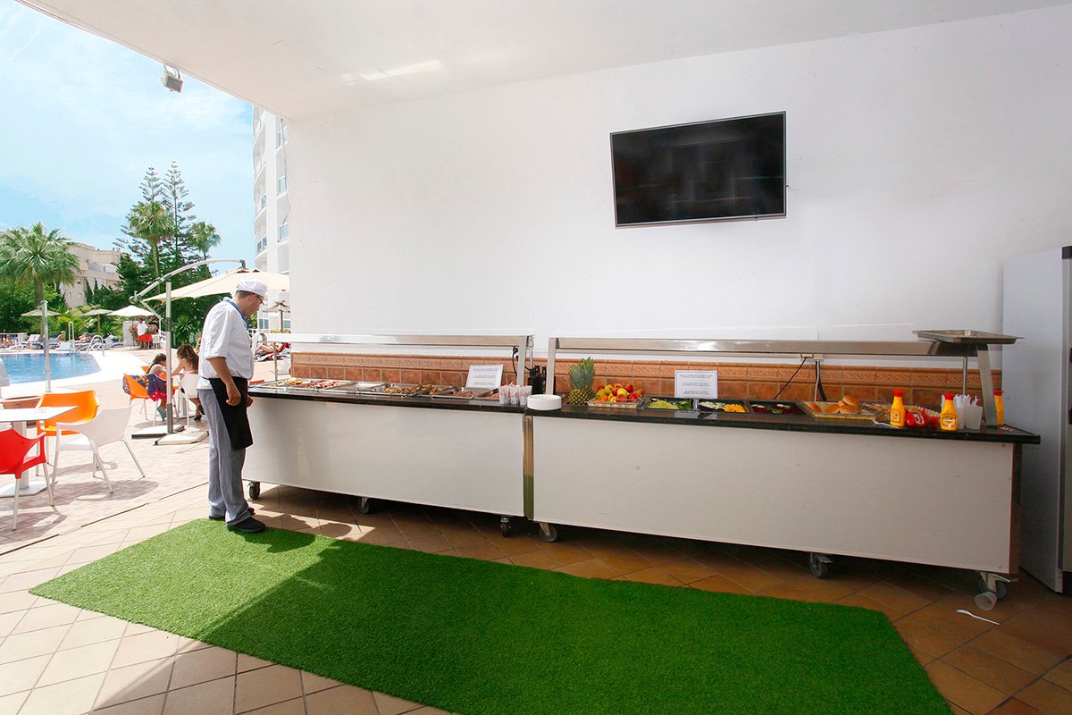śniadanie (8.00-10.00), późne śniadanie kontynentalne (10.30-11.30), obiad (13.00-15.00), kolacja (19.30-21.30) w formie bufetu w restauracji; przekąski (11.30-15.30 – hamburgery, hot dogi, kanapki, frytki; 15.30-17.30 – naleśniki, kanapki); napoje bezalkoholowe i lokalne napoje alkoholowe (10.30-22.30) w wyznaczonym barze; w godzinach 22.30-08.00 – przekąski i napoje bezalkoholowe serwowane są w wyznaczonym miejscu; wymagane noszenie opasek all inclusive.