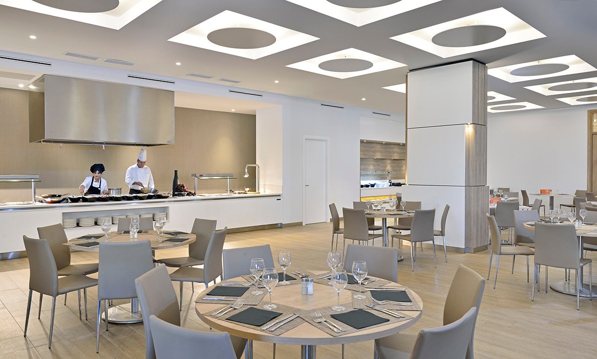 śniadanie (7.30-10.30), obiad (13.00-15.30), kolacja (18.30-21.30) w formie bufetu w wyznaczonej restauracji; przekąski (11.00-18.00) w wyznaczonych barach; kawa, herbata, desery, lody (11.00-17.30); napoje bezalkoholowe i lokalne napoje alkoholowe w wyznaczonych barach (11.00-24.00), lista napojów objętych all inclusive dostępna u barmana; wymagane noszenie opasek all inclusive.