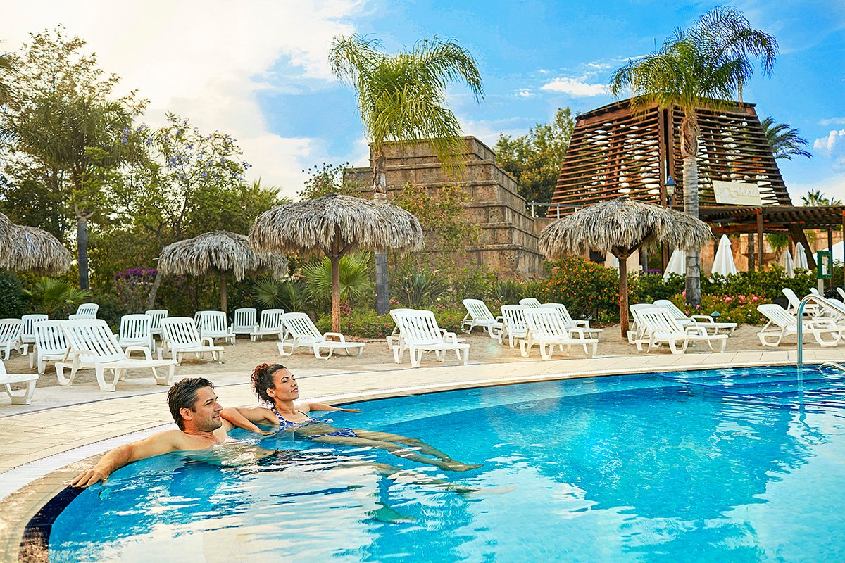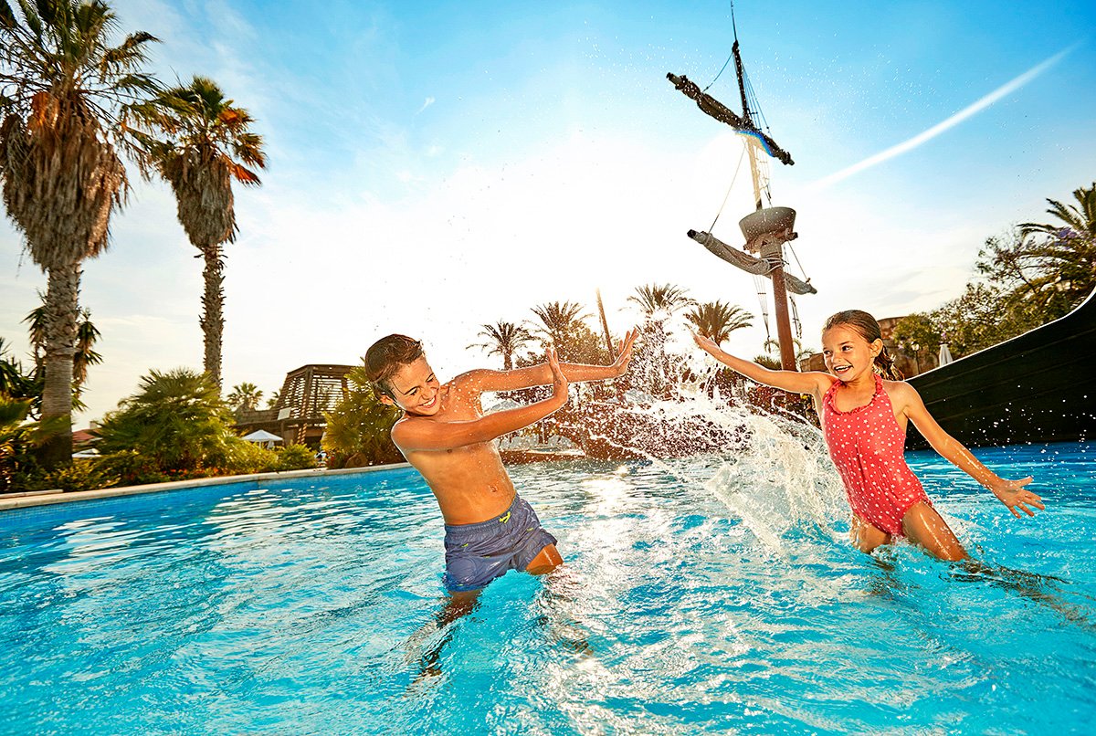 basen ze sztuczną plażą, słodka woda, ok. 1000 m², jacuzzi, basen dla dzieci z zatopionym statkiem pirackim, słodka woda, ok. 300 m², gł. 0,5 m, przy basenie bezpłatne parasole i leżaki, ręczniki za kaucją (ok. 10 EUR); plac zabaw dla dzieci, animacje dla dorosłych i dzieci: muzyka na żywo, konkursy, zabawy dla dzieci; nielimitowany, bezpłatny dostęp do wszystkich atrakcji parku rozrywki PortAventura (bez restauracji i barów), 1 raz na pobyt bezpłatny wstęp do atrakcji parku rozrywki Ferrari Land (bez restauracji i barów); za opłatą: wstęp do parku Aquatic.