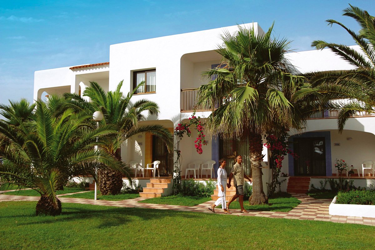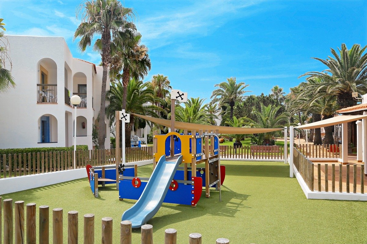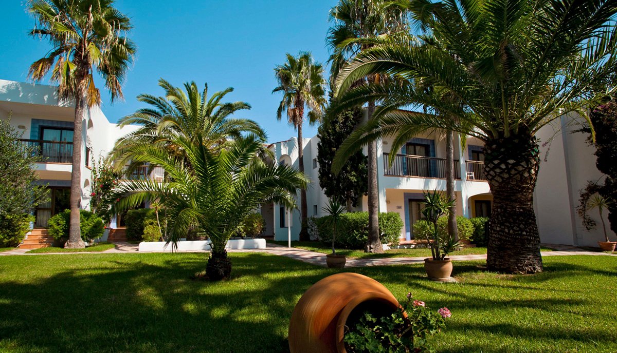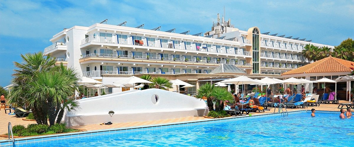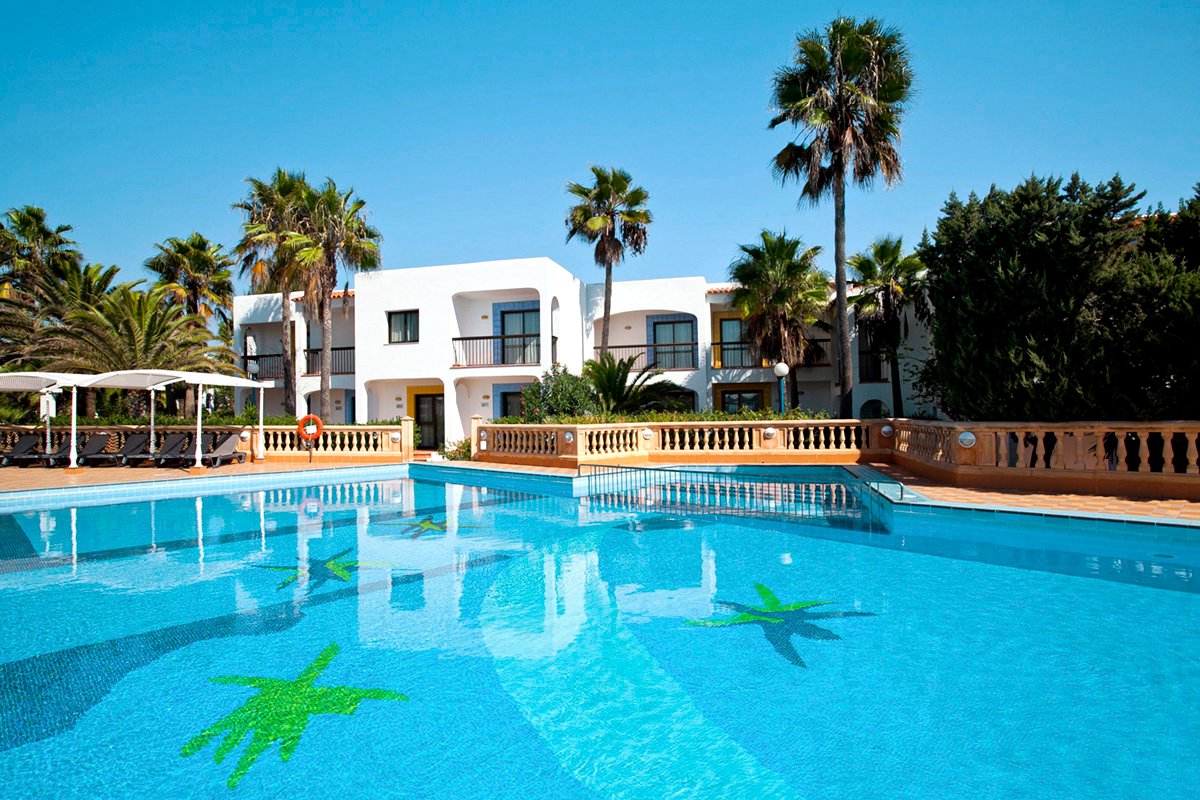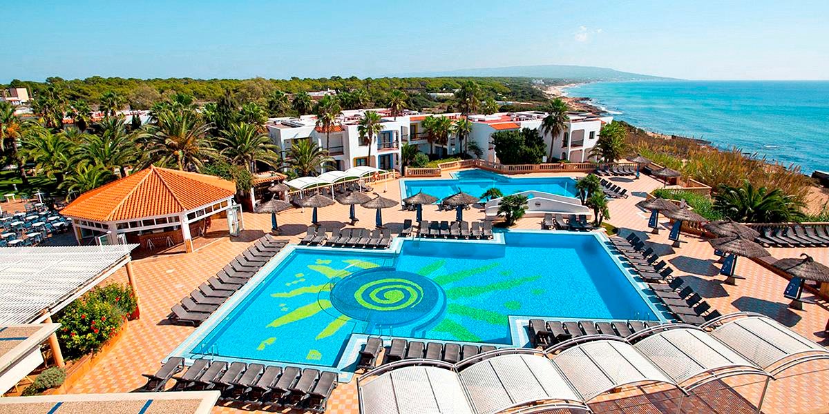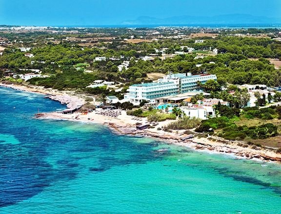 na południowym wybrzeżu, w spokojnej dzielnicy hotelowej Platja de Migjorn, w pobliżu sklepów i barów, ok. 6 km od stolicy wyspy SANT FRANCESCO, ok. 13 km od latarni La Mola, ok. 5 km od portu la Savina; transfer z lotniska na Ibizie, przeprawa promem i transfer do hotelu (ok. 1 godz., obowiązkowa dopłata płatna na lotnisku u rezydenta: przeprawa promowa: Ibiza - Formentera - Ibiza i transfer na Formenterze: ok. 65 EUR/os./2 strony, dzieci do 12 lat: ok. 44 EUR; aktualny rozkład promów dostępny na www.balearia.com); przystanek autobusowy przy hotelu.