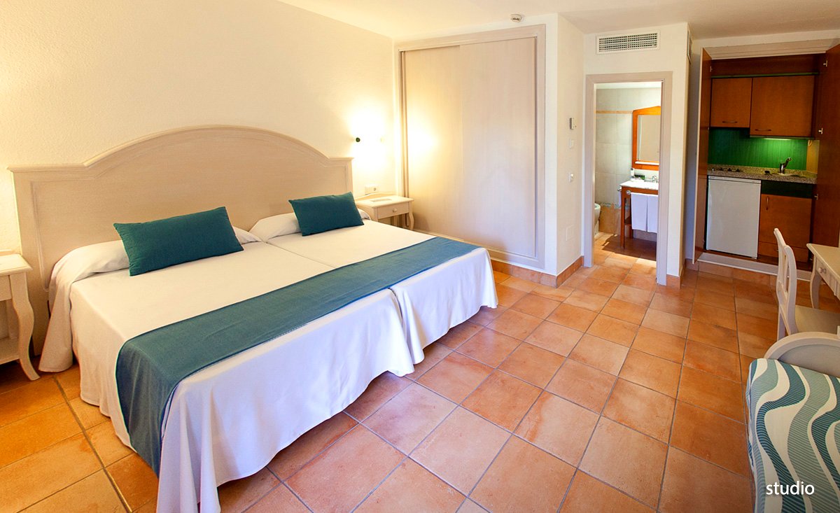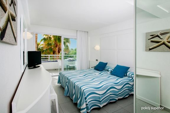 superior: 2-os. (możliwość 1 dostawki dla dziecka), ok. 20 m², nowocześnie wyposażony, indywidualnie sterowana klimatyzacja, łazienka (wanna lub prysznic, wc; suszarka), telewizja satelitarna, telefon; za opłatą: internet bezprzewodowy (ok. 9 EUR/dzień, ok. 28 EUR/tydz.), minibar, sejf (ok. 20 EUR/tydz., depozyt 7 EUR); bezpłatne łóżeczko dla dziecka na zamówienie przed przyjazdem; widok na ogród lub basen; studio: dla maks 4 os., wyposażenie jak w pokoju superior, dodatkowo 2-os. rozkładana sofa, w pełni wyposażony aneks kuchenny, lodówka; studio za dopłatą.