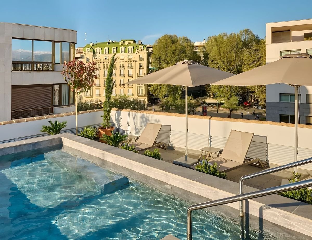 W samym sercu Granady znajdziesz butikowy hotel z zaledwie 34 pokojami, który łączy kameralny klimat z elegancją. Na dachu czeka taras i basen z widokiem na miasto – idealne miejsce na chwilę relaksu po dniu pełnym wrażeń. W restauracji, ukrytej w klimatycznym andaluzyjskim patio, spróbujesz lokalnych specjałów i dań kuchni międzynarodowej. To świetna baza, by cieszyć się atmosferą miasta i jego niezwykłymi zabytkami.