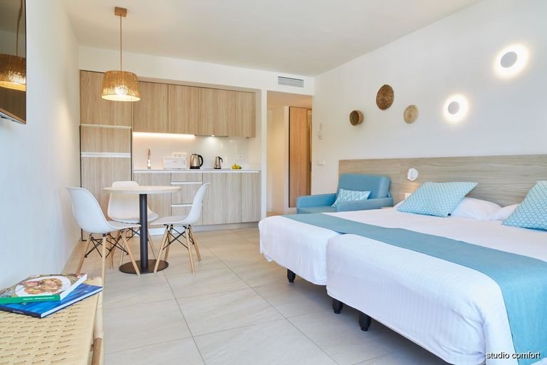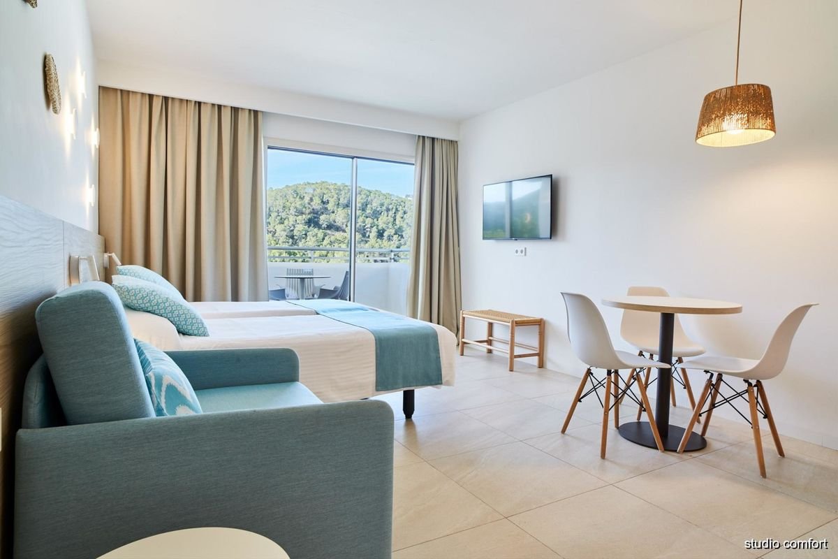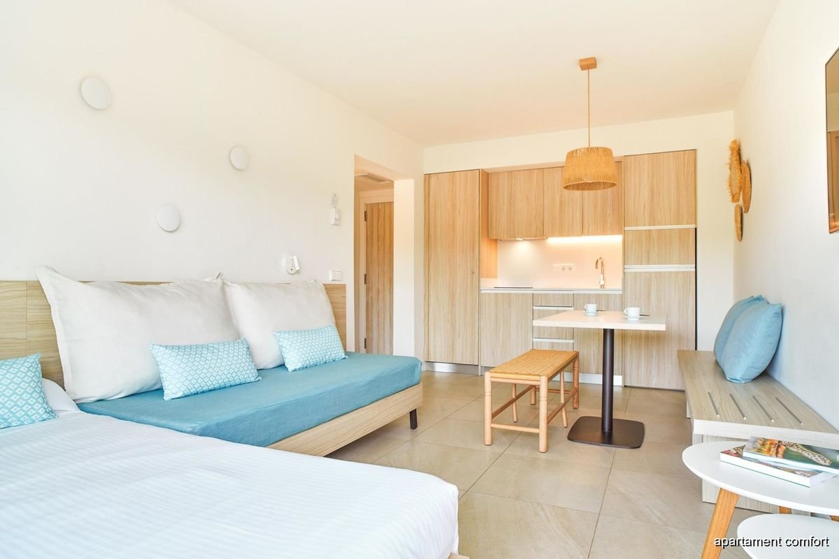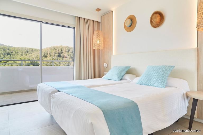 Położony w cichym i spokojnym zakątku Port de Sant Miquel, na wzgórzu, z którego roztaczają się malownicze widoki na porośnięte lasem góry i zatokę, poleca się na beztroski urlop w gronie rodziny. Tutaj zaplanujesz swój pobyt dokładnie tak, jak lubisz. Zjedz smaczne śniadanie w hotelowej restauracji i wybierz się na pobliską plażę, nie tracąc ani chwili z urlopowego czasu, a jeśli stawiasz na relaks i długie leniuchowanie, to też nie problem – nowoczesne i przestronne pokoje są wyposażone w aneksy kuchenne, w których przyrządzisz swoje ulubione posiłki. Na miejscu znajdują się także 2 baseny, w tym dla dzieci, kort tenisowy oraz miniklub, a ciekawe animacje zapewnią rozrywkę zarówno starszym, jaki i młodszym wczasowiczom. Piękna okolica, wspaniała atmosfera, przyjazna obsługa – wszystko, co potrzebne do udanego wypoczynku jest tu na wyciągniecie ręki.