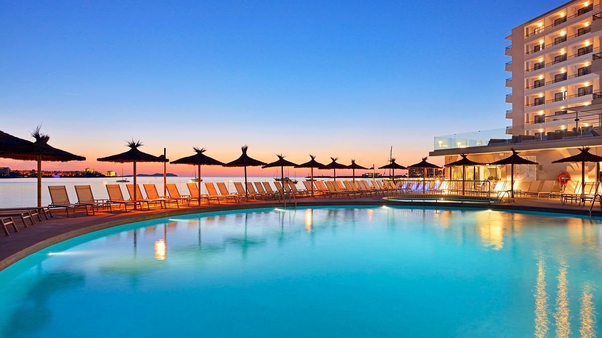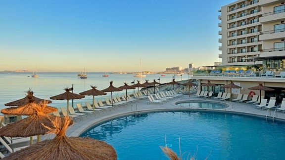 Położony w samym sercu zatoki San Antonio, tuż przy promenadzie i plaży Es Puet, jest doskonałym wyborem na wakacje zarówno dla rodzin, jak i par. Hotel posiada bogate zaplecze sportowo-rekreacyjne, m.in. miniklub, plac i pokój zabaw, a nawet ściankę wspinaczkową dla dzieciaków, a dla dorosłych basen i animacje w ciągu dnia. Wieczorem na drinka polecamy wybrać się do baru Sunset Chill Out na tarasie z cudownym widokiem na morze i ekskluzywną częścią z łóżkami balijskimi. Podziwiaj zapierające dech zachody słońca, opalaj się na plaży, pluskaj w basenie i koniecznie zwiedź okolicę – San Antonio słynie nie tylko z barów i klubów, ale również zabytków i doskonałych tras spacerowych!