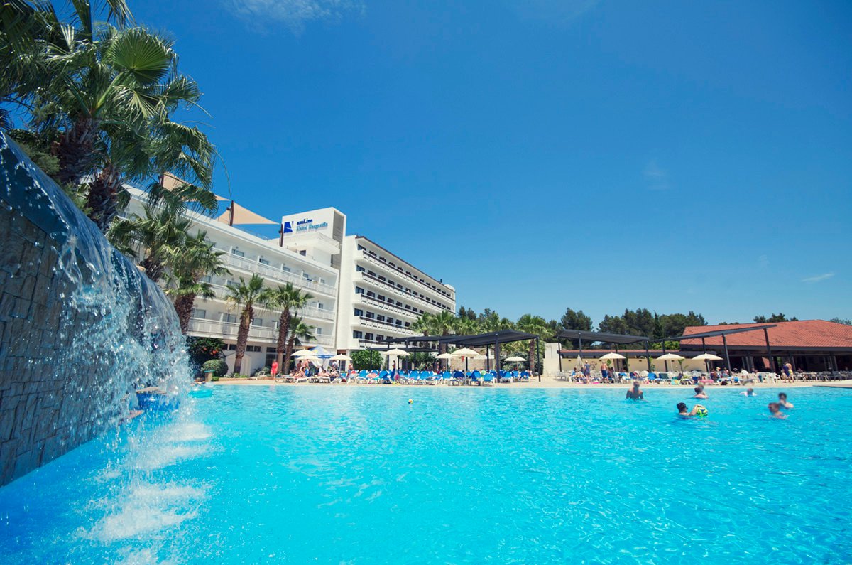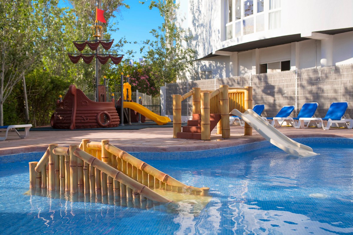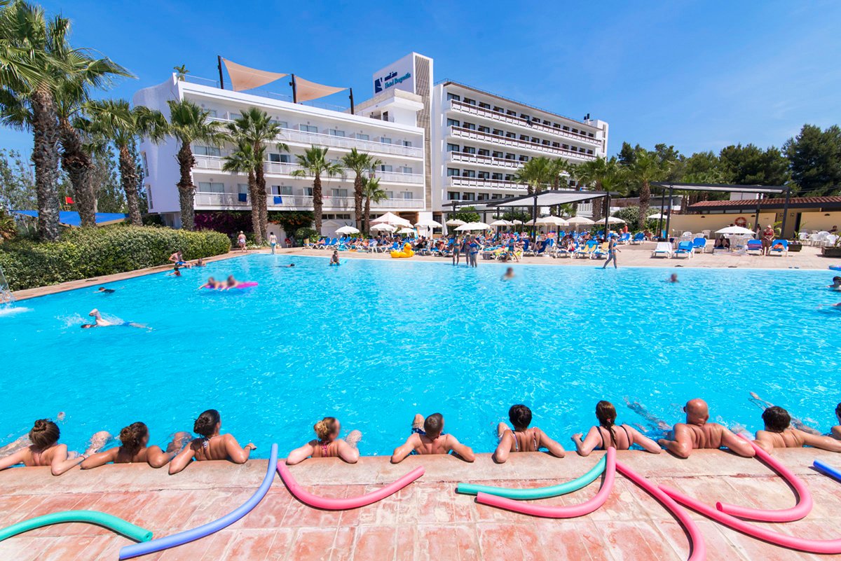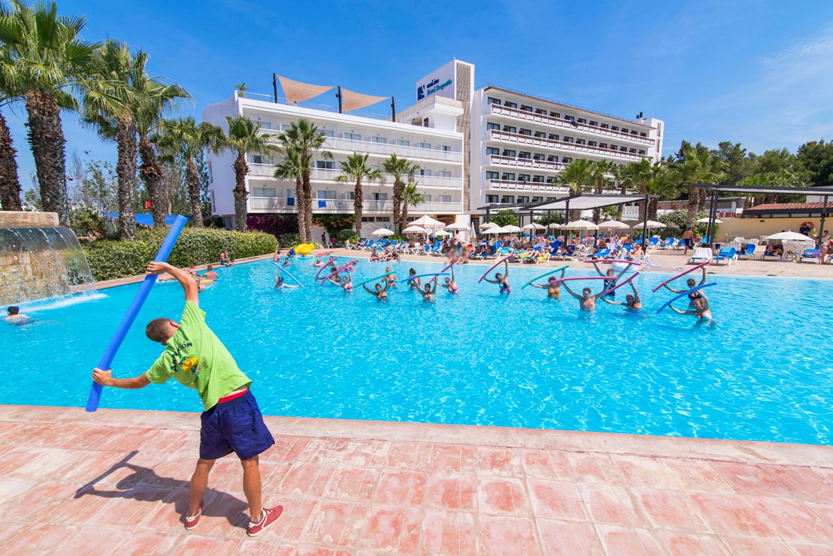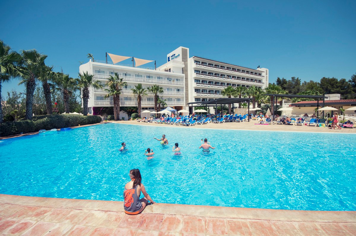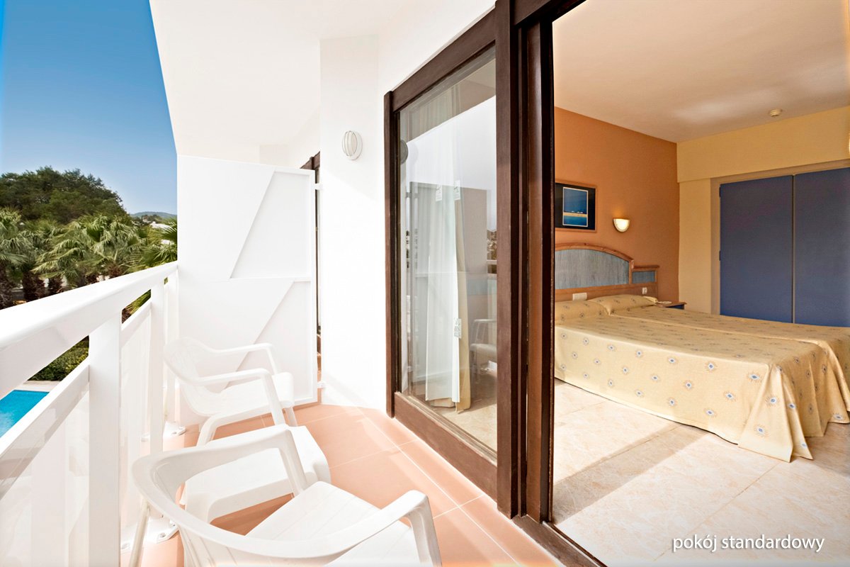 Położony w malowniczej zatoce San Antonio hotel to doskonały wakacyjny wybór zarówno dla rodzin, jak i dla par. Dzięki podziałowi na strefy dla dorosłych i rodzin z dziećmi, każdy wypocznie tak, jak lubi. Bogata oferta sportowo-rekreacyjna oraz 3 baseny, w tym 1 specjalnie dla dzieci i 1 dla dorosłych, to atuty, które na pewno skuszą także ceniących sobie aktywny wypoczynek na świeżym powietrzu, a najmłodsi chętnie odwiedzą statek piracki i basenową zjeżdżalnię. Na miejscu również 2 restauracje i bary serwujące pyszne, orzeźwiające drinki i przekąski. Goście pokoi premium mogą skorzystać z eleganckiego tarasu na dachu hotelu, z którego rozciąga się piękny widok na zatokę.