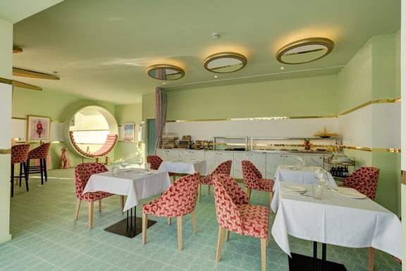 Inspirowany art déco, instagramowy i wyjątkowy, klimatem przypomina Miami Ocean Drive. Położony w malowniczej zatoce San Antonio, niedaleko plaży, z cudownym widokiem na morze. Tu odpoczniesz w luźnej atmosferze i kolorowych, energetycznych wnętrzach. Spędź czas na leżaku przy basenie, zrelaksuj się w jacuzzi w kształcie kultowego samochodu lub... wybierz się do kina! Takie atrakcje tylko tu!