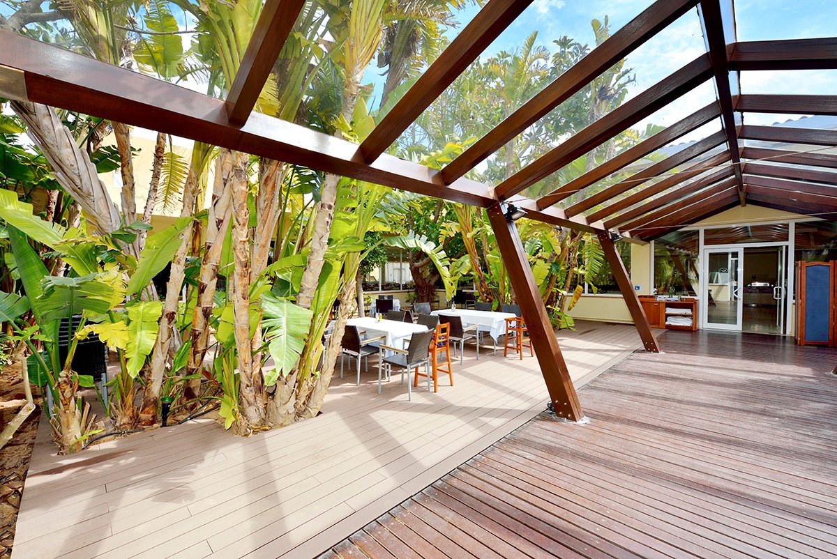 śniadanie (8.00-10.30), obiad (12.30-14.30), kolacja (18.30-21.00) w formie bufetu w restauracji głównej; przekąski w barze przy basenie (10.30-18.30); napoje bezalkoholowe i lokalne napoje alkoholowe w wyznaczonych barach (10.00-24.00), dodatkowo: dwa razy na pobyt kolacja w restauracji à la carte (wymagana wcześniejsza rezerwacja w recepcji); wymagane noszenie opasek all inclusive.