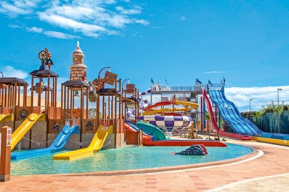 basen infinity, nieregularny kształt, słodka woda, ok. 400 m², gł. 1-1,6 m, basen dla dorosłych, kształt prostokątny, słodka woda, ok 200 m², gł 1-1,8 m, 2 brodziki dla dzieci, słodka woda, ok. 25 m², gł. 0,4-0,6 m, przy basenach bezpłatne parasole i leżaki, ręczniki za kaucją; kryty basen, prostokątny kształt, słodka woda, ok. 150 m², gł. 1-1,6 m; boisko wielofunkcyjne, tenis stołowy, siłownia, pokój gier, plac zabaw; aquapark Aquamaris przy hotelu: wodny park rozrywki dla dzieci o powierzhni 4500 m², kilka zjeżdżalni, statek piracki z fontannami i ślizgawkami, wstęp bezpłatny dla Gości hotelu; za opłatą: 3 korty tenisowe z oświetleniem i wypożyczalnią sprzętu, minigolf, bilard, łucznictwo, centrum wellness (wstęp od 18 lat): solarium, sauna, jacuzzi; oferta zewnętrzna: sporty wodne na plaży, szkoła nurkowania.