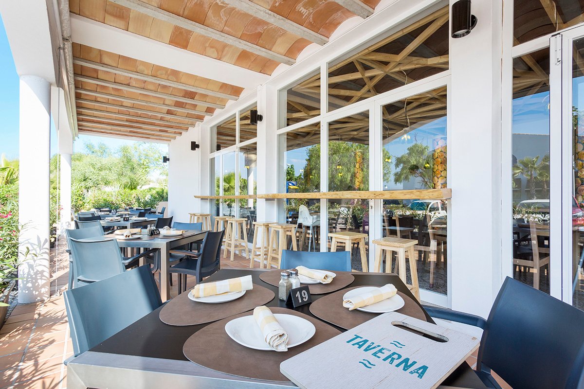 czterogwiazdkowy, zadbany, zbudowany w 1999 r., regularnie odnawiany, 204 pokoje, zabudowa szeregowa w formie wioski turystycznej, 1-2 piętra, przestronne i eleganckie lobby, całodobowa recepcja, restauracja główna El Patio - dania w formie bufetu, kuchnia hiszpańska i międzynarodowa, dostępne foteliki i menu dla dzieci, dania wegetariańskie, inne diety na zamówienie przed przyjazdem, restauracja Tepanyaki - à la carte, kuchnia japońska, show-cooking, restauracja Taverna - kuchnia hiszpańska; bar w lobby, bar La Capula przy basenie, sala telewizyjna, czytelnia, przechowalnia bagażu, kantor, bankomat, kiosk z gazetami, poczta, parking; taras z widokiem na morze, ogród z roślinnością śródziemnomorską, internet bezprzewodowy w miejscach publicznych w hotelu; za opłatą: punkt internetowy, room-service, sejf w recepcji, pralnia, wypożyczalnia samochodów; akceptowane karty kredytowe: Visa, MasterCard, American Express.