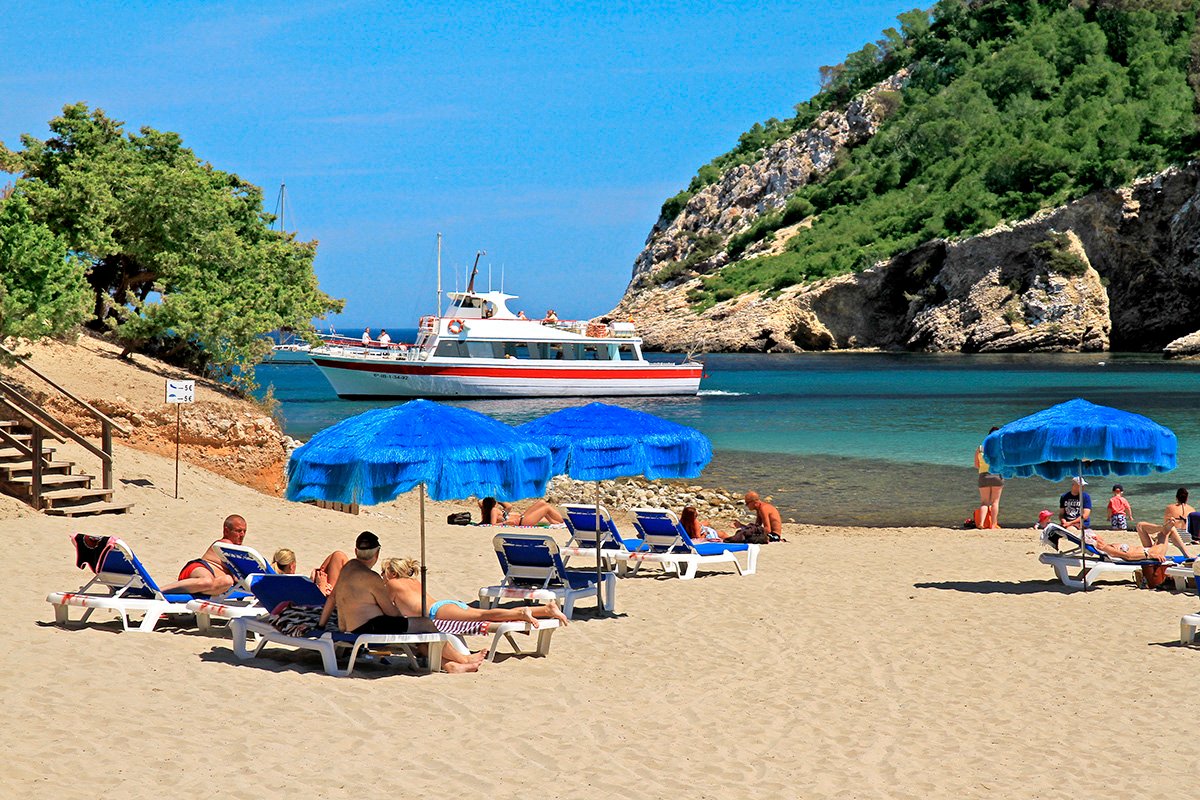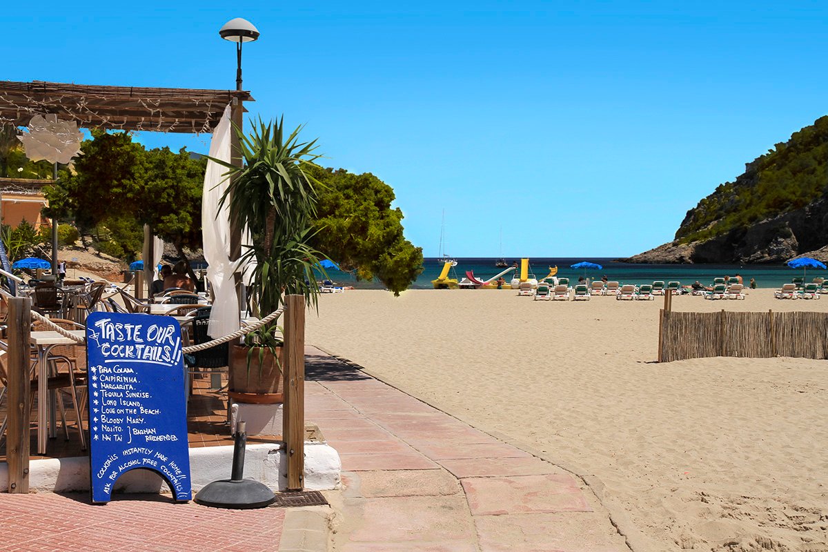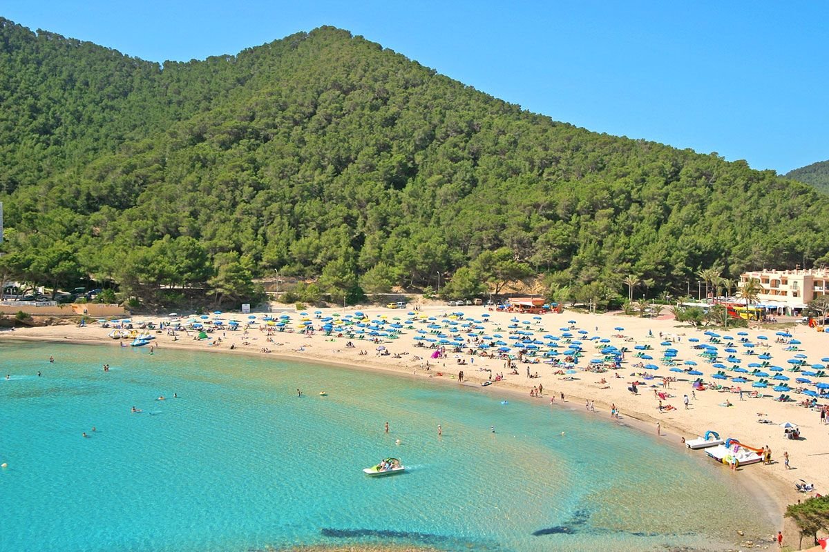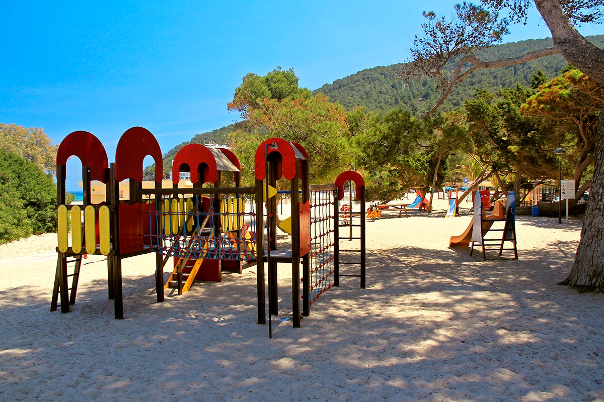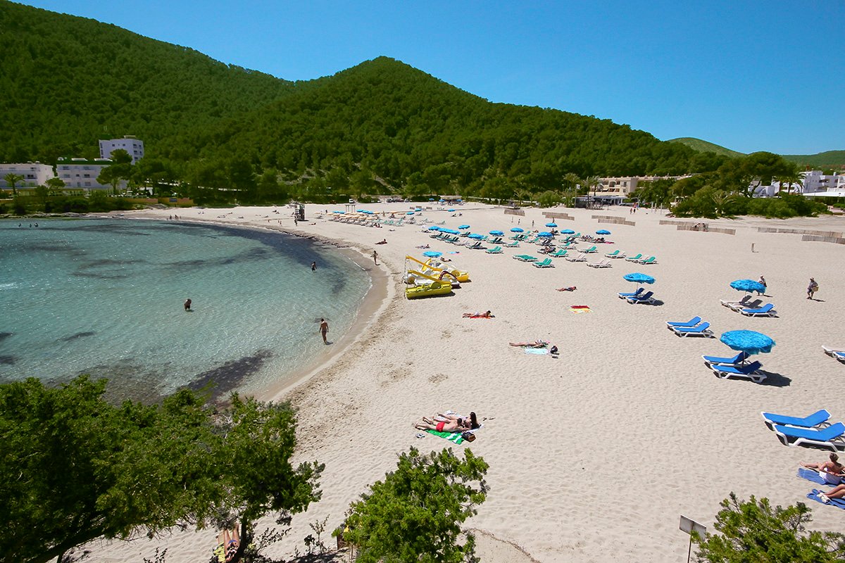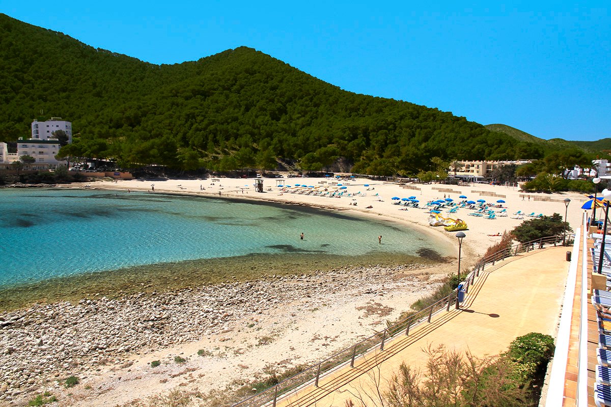 Cala Llonga, publiczna, piaszczysta, szerokość ok. 100 m i długość ok. 200 m, otoczona lasem piniowym, łagodne zejście do morza, wyróżniona certyfikatem Błękitna Flaga, bezpośrednio przy hotelu, parasole i leżaki płatne (ok. 5 EUR/dzień); Sol d’en Serra, publiczna, kamienista, dojazd drogą lokalną, ok. 1,5 km od hotelu.