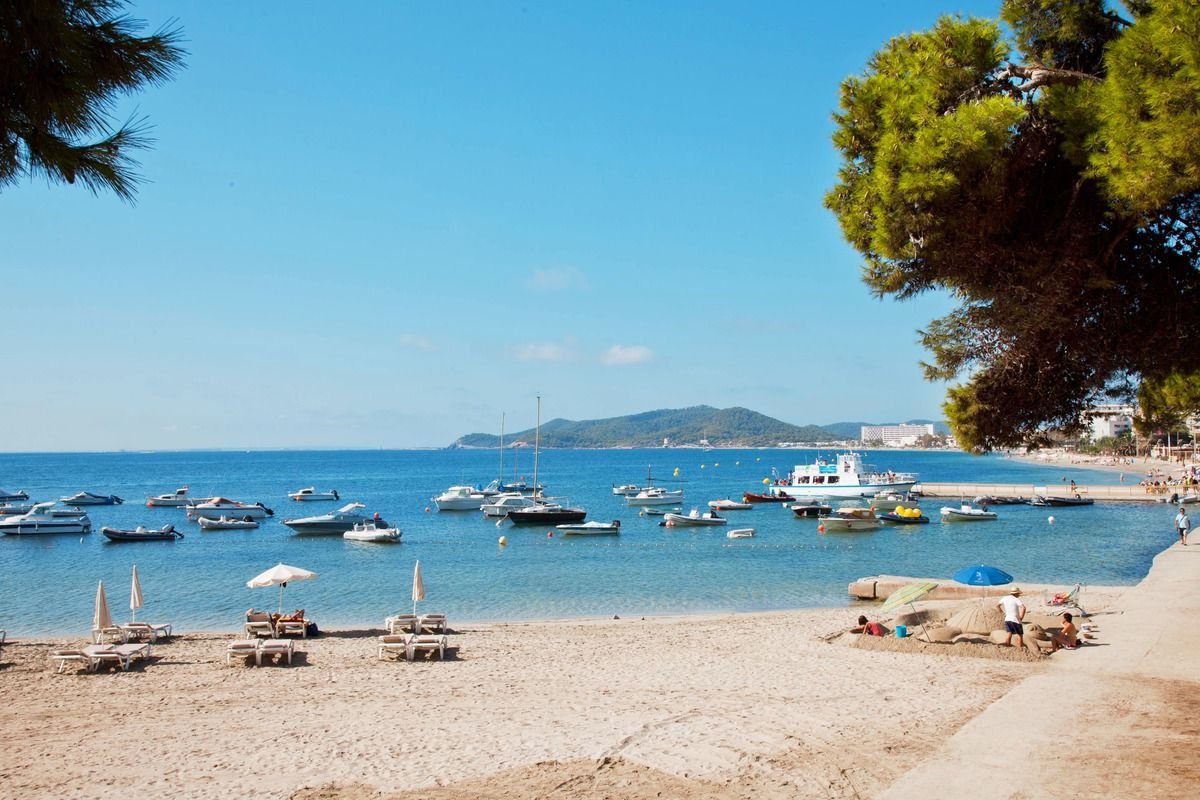 Playa d’en Bossa, publiczna, piaszczysta, najdłuższa na Ibizie – ok. 3 km, łagodne zejście do morza, bezpośrednio przy hotelu, parasole i leżaki płatne (ok. 8 EUR/dzień).