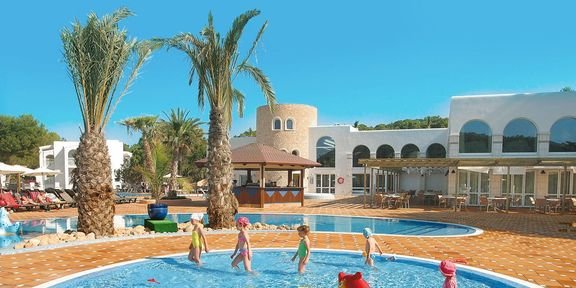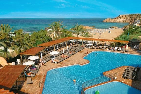Cala Tarida, piaszczysta, o długości ok. 260 m, przy hotelu, w cichej zatoczce otoczonej charakterystycznym śródziemnomorskim krajobrazem; ręczniki plażowe dostępne w hotelu (depozyt ok. 20 EUR); leżaki i parasole na plaży płatne (ok. 8 EUR/dzień/sztuka).
