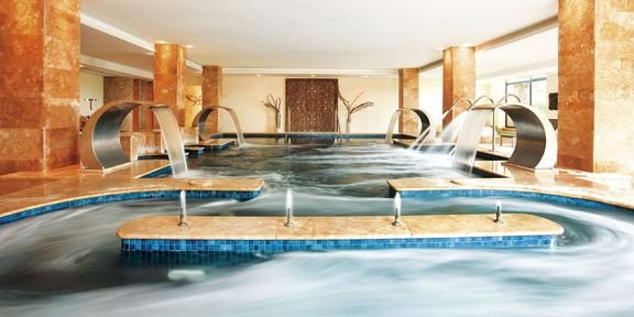 eleganckie i nowoczesne, ok. 1200 m², kryty basen, baseny zewnętrzne: podgrzewany i z hydromasażem, siłownia, solarium, sauna, ziołowa łaźnia parowa, solna łaźnia parowa, laconium o niższej niż klasyczna sauna temperaturze (55° C), fontanna lodowa, prysznice vichy, kąpiele borowinowe, zabiegi lecznicze, pokój relaksacyjny z podgrzewanymi łóżkami i leżakami; gabinet kosmetyczny, siłownia; wszystkie zabiegi i urządzenia płatne.