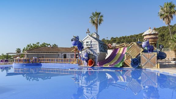 Doskonałe miejsce na rodzinne wakacje! Położony w spokojnej okolicy, w otoczeniu lasu piniowego, a jednocześnie niedaleko centrum oferuje komfortowy i pełen atrakcji wypoczynek zarówno dla dzieci i jak i dorosłych. Najmłodsi Goście będą wspaniale bawić się w basenie ze zjeżdżalniami i podczas wesołych zajęć sportowych z animatorami, w tym czasie rodzice mogą odprężyć się przy basenie dla dorosłych i delektować się orzeźwiającym drinkiem w jednym z barów.