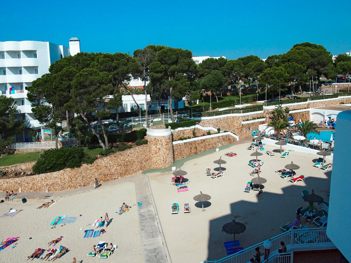 Cala Egos, publiczna, wąska i piaszczysta, łagodne zejście do morza, bezpośrednio przy hotelu, dojście ścieżką, parasole, leżaki i materace płatne (ok. 10 EUR/komplet); Cala Es-Forti, publiczna, piaszczysta, łagodne zejście do morza, ok. 600 m od hotelu, dojście chodnikiem i ścieżką, leżaki i materace płatne (ok. 12 EUR/komplet).