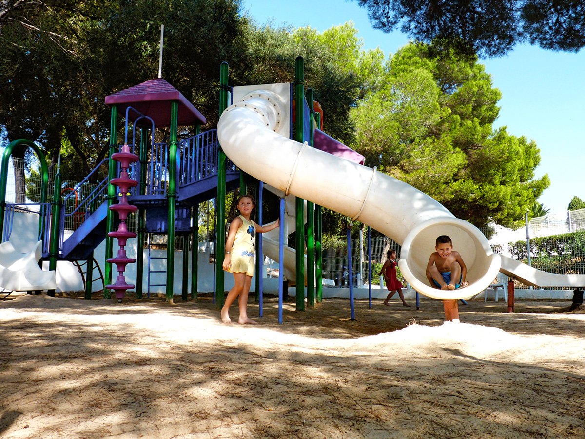 Cala Egos, publiczna, piaszczysta, łagodne zejście do morza, bezpośrednio przy hotelu, parasole i leżaki płatne (ok. 10 EUR/komplet/dzień); Cala es Forti, w zatoczce, z formacjami skalnymi, publiczna, piaszczysta, łagodne zejście do morza, ok. 600 m od hotelu, dojście chodnikiem i ścieżką, parasole, leżaki i materace płatne (ok. 12 EUR/komplet); bar, zjeżdżalnia.