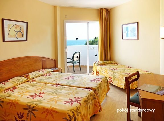 standardowy: 2-os. (możliwość 1 lub 2 dostawek dla dzieci – sofa), ok. 25 m², zadbany, klimatyzowany, łazienka (wanna, wc; suszarka), telewizja satelitarna, lodówka, telefon, deska do prasowania i żelazko (depozyt); za opłatą: internet bezprzewodowy; bezpłatne łóżeczko dla dziecka do 2 lat na zamówienie przed przyjazdem; balkon lub taras (stolik i krzesełka), widok na basen; widok na morze za dopłatą; superior: 2-os. (możliwość 1 dostawki), ok. 25 m², nowoczesny, klimatyzowany, wyposażenie jak w pokoju standardowym, dodatkowo zestaw do kawy i herbaty, widok na morze; wstęp do strefy lounge; pokój superior za dopłatą.