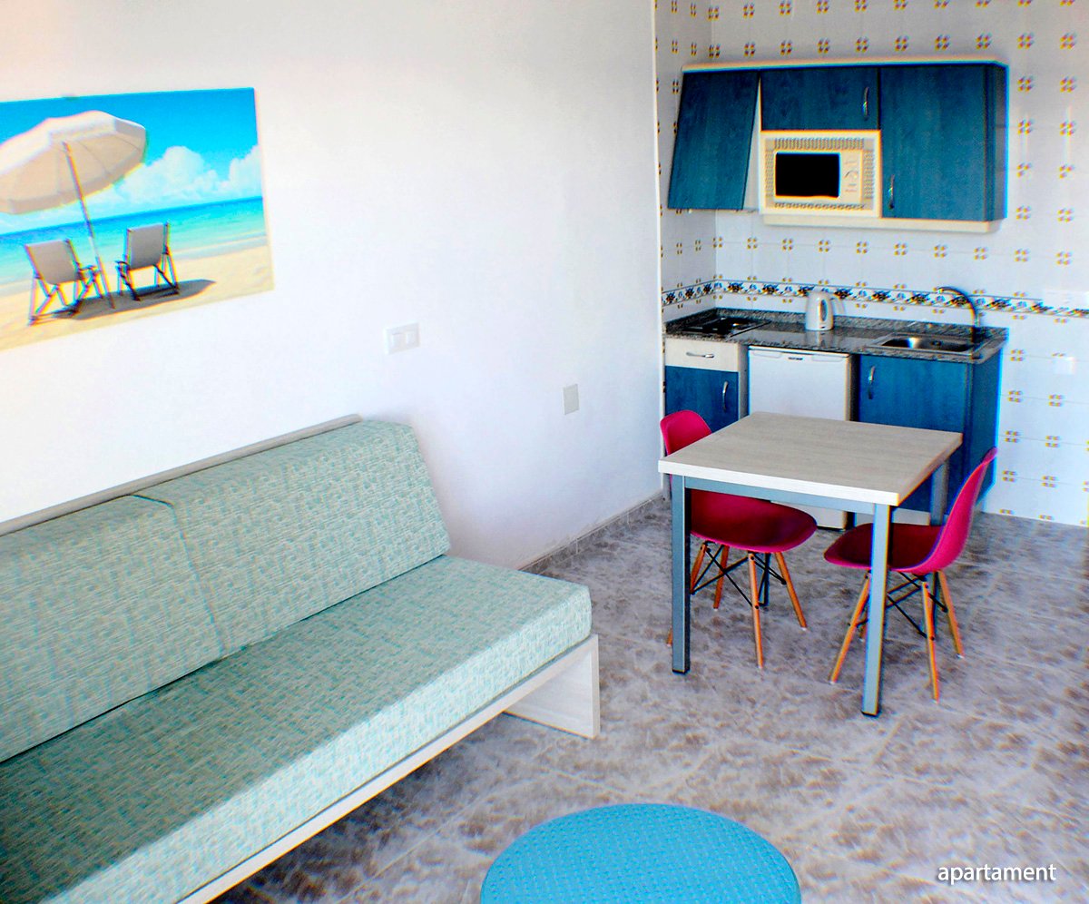 dla maks. 4 os., ok. 35 m², odnowiony w 2016 r., nowoczesny, wyposażenie jak w studio, dodatkowo 1 sypialnia oddzielona drzwiami; apartament za dopłatą.