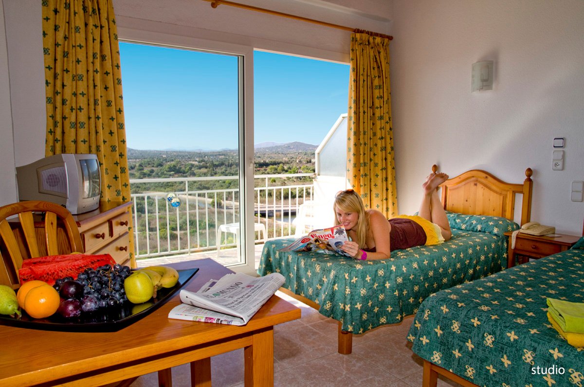 2-os. (możliwość 1 dostawki dla dziecka), ok. 25 m², indywidualnie sterowana klimatyzacja (ok. 5 EUR/dzień, ok. 30 EUR/tydz.), łazienka (wanna lub prysznic, wc; suszarka), w pełni wyposażony aneks kuchenny, lodówka, wentylator, telewizor, telefon; za opłatą: sejf (ok. 25 EUR/tydz.), telewizja satelitarna; łóżeczko dla dziecka do 2 lat na zamówienie przed przyjazdem (płatne: 3 EUR/dzień); balkon lub taras (stolik i krzesełka), widok na góry; widok na morze za dopłatą.