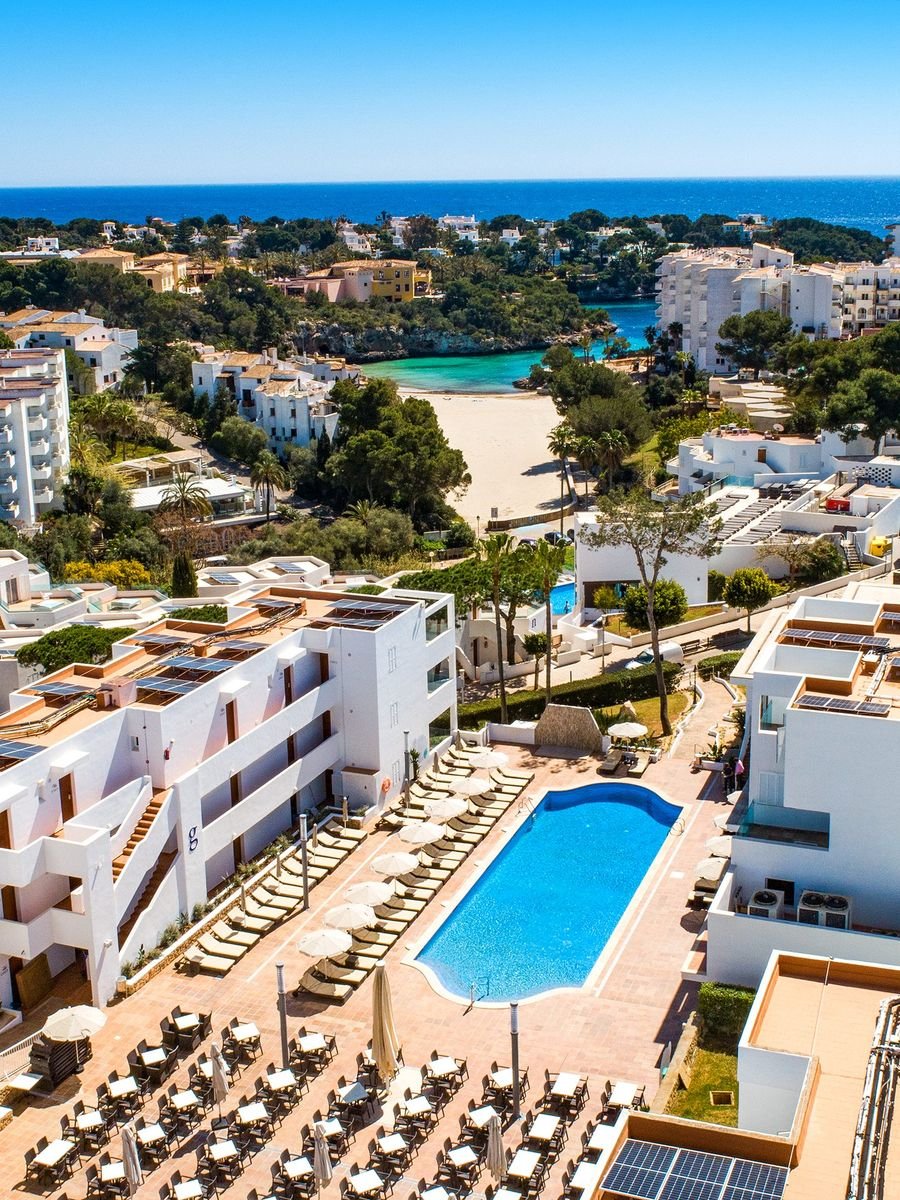 Marzysz o beztroskich, rodzinnych wakacjach pełnych słońca i zabawy? To świetne miejsce dla Ciebie! Położony w spokojnym miejscu, otoczony bujną śródziemnomorską zielenią, jest dobrym wyborem na aktywne wakacje dla całej rodziny. Kilka kroków dzieli Cię stąd do charakterystycznej dla Majorki zatokowej plaży z czystą, błękitną wodą, a jeśli wolisz relaks na miejscu, czeka na Ciebie kilka basenów, przestronny taras i bogaty program rozrywkowy. Przyjemnym spacerem dojdziesz do innych plaż oraz do centrum miasta, które oferuje lokalne restauracje, bary i miejsca sprzyjające uprawianiu sportów wodnych.