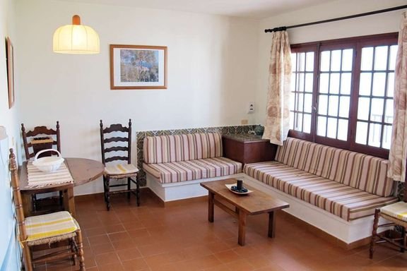 dla maks. 5 os., ok. 45 m², wentylator sufitowy, łazienka (wanna, wc), aneks kuchenny, lodówka; łóżeczko dla dziecka do 2 lat na zamówienie przed przyjazdem (płatne: ok. 25 EUR/tydz.); balkon lub taras (stolik i krzesełka).
