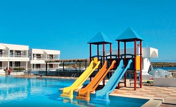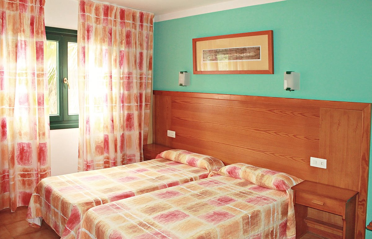 apartament: 2-os. (możliwość 1 lub 2 dostawek dla dzieci), ok. 35 m², wentylator, łazienka (wanna lub prysznic, wc), aneks kuchenny (kuchenka elektryczna, mikrofalówka, naczynia, toster), lodówka; za opłatą: klimatyzacja (ok. 10 EUR/dzień), sejf (ok. 3 EUR/dzień, kaucja: 5 EUR); bezpłatne łóżeczko dla dziecka do 2 lat na zamówienie przed przyjazdem; taras lub balkon (stolik i krzesełka), widok na ogród lub basen; widok na morze za dopłatą.