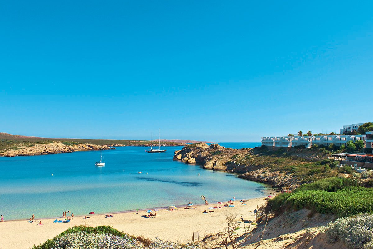 Son Saura, publiczna, piaszczysta, długa i szeroka, łagodne zejście do morza, ok. 300 m od hotelu, dojście ścieżką i zejście po schodach lub kładką ok. 1,5 km od hotelu, parasole, leżaki i materace płatne (ok. 15 EUR/komplet).