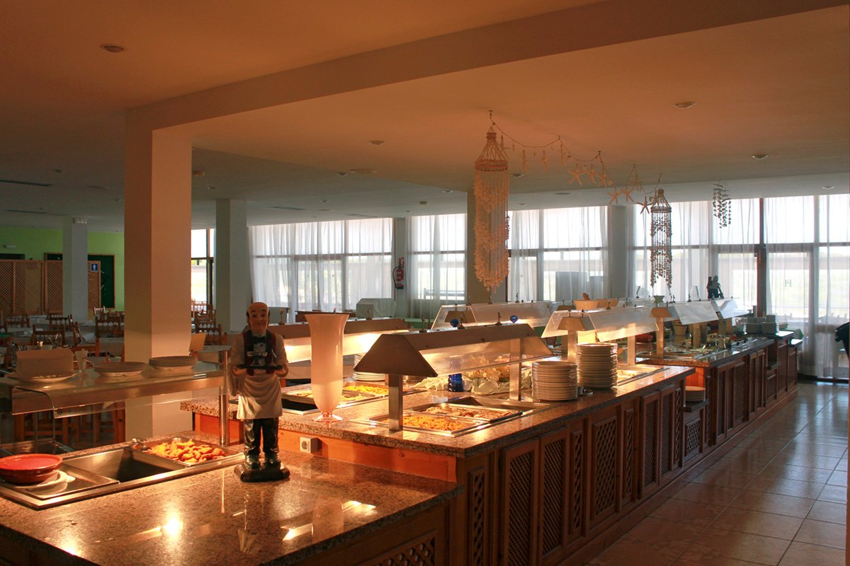 śniadanie (8.00-10.00), obiad (12.30-14.30), kolacja (18.30-21.00) w formie bufetu w restauracji głównej; do posiłków nielimitowane wino, woda, piwo i słodkie napoje orzeźwiające.