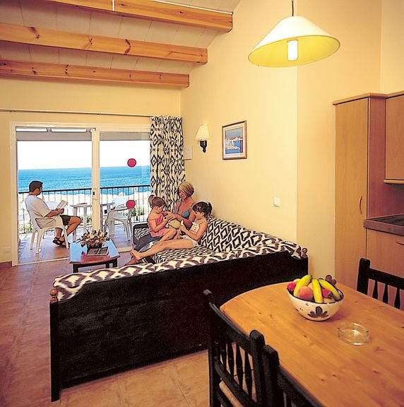 dla maks. 4 os., ok. 35 m², zadbany, ładnie urządzony, indywidualnie sterowana klimatyzacja, łazienka (wanna lub prysznic, wc), pokój dzienny z miejscami do spania i aneksem kuchennym, sypialnia, telewizja satelitarna, telefon, lodówka; za opłatą: sejf (15 EUR/tydz.; 12 EUR/depozyt); bezpłatne łóżeczko dla dziecka do 2 lat na zamówienie przed przyjazdem; balkon lub taras (stolik i krzesełka, suszarka); widok na morze za dopłatą.