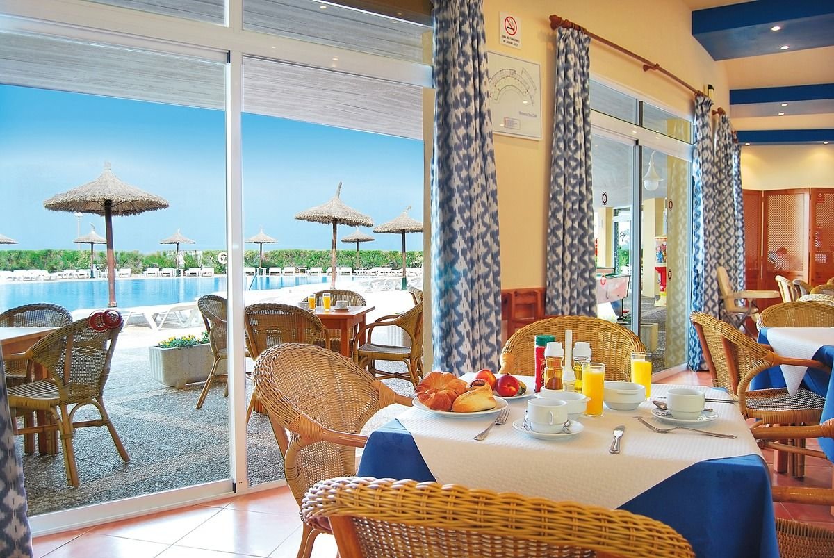 śniadanie (8.00-10.00), obiad (13.00-14.30), kolacja (19.00-21.30) w formie bufetu w restauracji głównej; przekąski i lody (16.00-18.30); lokalne napoje alkoholowe i bezalkoholowe w barach (11.00-23.00); wymagane noszenie opasek all inclusive.