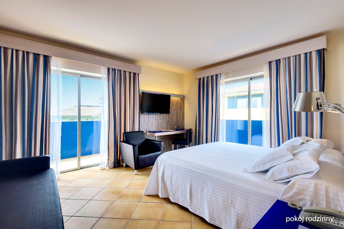 standardowy: 2-os., ok. 20 m², komfortowo i nowocześnie urządzony, indywidualnie sterowana klimatyzacja, łazienka (prysznic, wc; suszarka), internet bezprzewodowy, telewizja satelitarna, telefon; za opłatą: sejf (ok. 3 EUR/dzień, ok. 20 EUR/depozyt), minibar; balkon, taras lub ogródek (stolik i krzesełka; suszarka); rodzinny: dla maks. 4 os. dorosłych, ok. 53 m², nowoczesny i zadbany; dodatkowa łazienka i oddzielona drzwiami sypialnia; wyposażenie jak w pokoju standardowym; łóżeczko dla dziecka do 2 lat na zamówienie przed przyjazdem; pokój rodzinny za dopłatą.