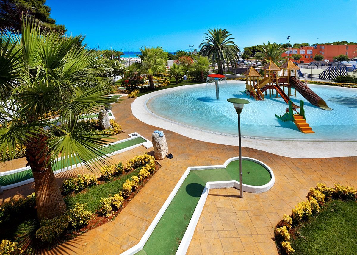 2 baseny, słodka woda: ok. 200 m², gł. 1,2-1,8 m i ok. 160 m², gł. 1,2-1,6 m, 2 baseny dla dzieci, słodka woda: ok. 64 m², gł. 0,4 m, i ok. 50 m², gł. 0,4 m, ze zjeżdżalnią; przy basenach bezpłatne parasole, leżaki, materace, ręczniki za kaucją (ok. 10 EUR); basen w części sportowej, 96 m², gł. 1,2-1,4 m; łucznictwo, strzelnica, siatkówka, tenis stołowy, piłka wodna, aerobik, plac zabaw dla dzieci, miniklub (4-12 lat), w ciągu dnia i wieczorami bardzo bogaty program animacyjny dla dzieci i dorosłych: zajęcia sportowe, wieczorne programy artystyczne, minidisco; za opłatą: kort tenisowy (ok. 2 EUR/godz.) z oświetleniem i wypożyczalnią sprzętu (ok. 2,5 EUR/rakieta), minigolf, bilard.