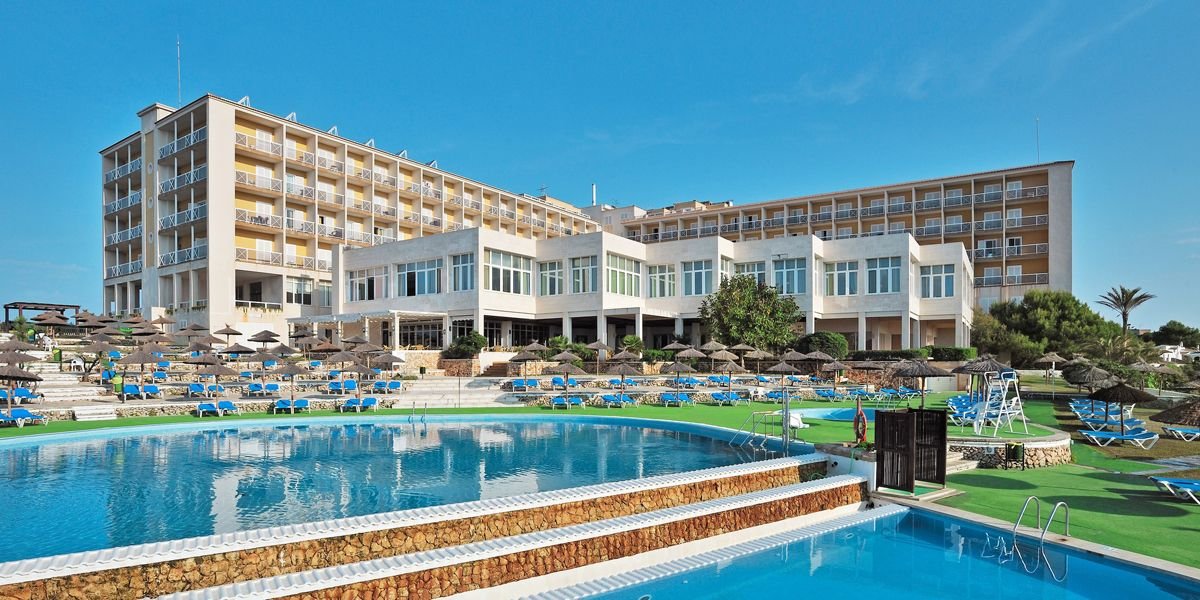 w północno-zachodniej części wyspy, na wysokim klifie, ok. 200 m od centrum miejscowości CALA'N FORCAT, ok. 2,5 km od dawnej stolicy wyspy Ciutadella; ok. 45 km od portu lotniczego w Mahón; przystanek autobusowyk ok. 50 m od hotelu.