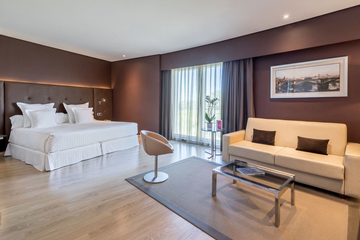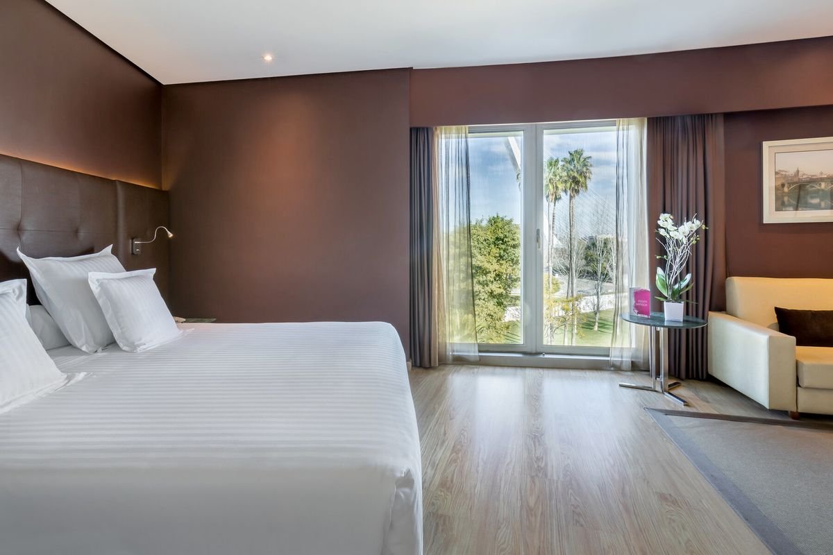 Luksusowy, zaprojektowany z rozmachem oferuje najwyższy standard gwarantowany przez znaną polskim turystom sieć Barceló. Już na wstępie intryguje nowoczesną formą budynków, położonych nad brzegiem rzeki Gwadalkiwir. Hotel jest dobrze skomunikowany z centrum Sewilli, a wielką atrakcją dla rodzin z dziećmi jest Isla Mágica – park rozrywki, położony dwa kroki stąd. Na miejscu Goście mają do wyboru kilka restauracji, basen zewnętrzny i kryty, siłownię, oraz przestronne, gustownie urządzone pokoje. Nowoczesne centrum konferencyjne polecamy organizatorom prestiżowych konferencji i eventów.