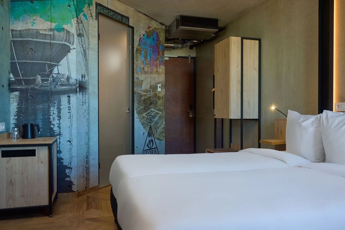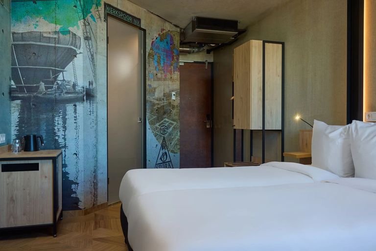 Usytuowany w cichej, portowej części Amsterdamu doskonale skomunikowanej z centrum, jest propozycją dla tych, którzy cenią sobie nietuzinkowy wystrój i spokojną atmosferę. Industrialny i surowy styl, w którym królują wysokie sufity, wyeksponowane instalacje i otwarte przestrzenie, nadaje wnętrzom niepowtarzalnego charakteru i nawiązuje do przemysłowej historii okolicy. Po dniu spędzonym na zwiedzaniu holenderskiej stolicy można zrelaksować się w strefie spa z krytym basenem, sauną fińską i hammamem, zjeść smaczny posiłek w hotelowej restauracji i po prostu odpocząć w zaciszu komfortowego pokoju, a w razie pytań lub wątpliwości zwrócić się do sympatycznej obsługi chętnie służącej radą i pomocą.