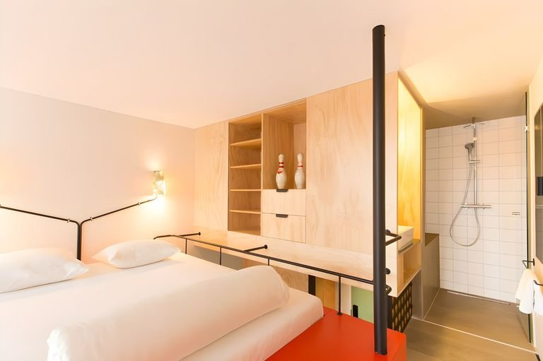 Zaskakujące miejsce w dzielnicy wschodniej Amsterdamu, które świetnie sprawdza się jako baza wypadowa – metro i tramwaj są tuż obok, a do centrum dotrzesz w kilka minut. Na dachu czekają dwa jacuzzi i sauna z widokiem na panoramę miasta, a wieczór warto spędzić w restauracji z tarasem, gdzie serwowane są dania w swobodnej atmosferze. Wnętrza mają swój charakter – surowe materiały, kreatywny design i artystyczna energia tworzą klimat, który zapada w pamięć. Na miejscu nie brakuje atrakcji: muzyka na żywo, tenis stołowy, piłkarzyki i gry planszowe sprawiają, że nawet po intensywnym dniu w mieście jest co robić. Goście chwalą to miejsce za luz, styl i dobrą energię!