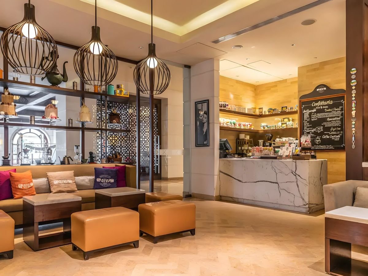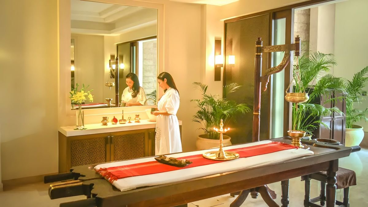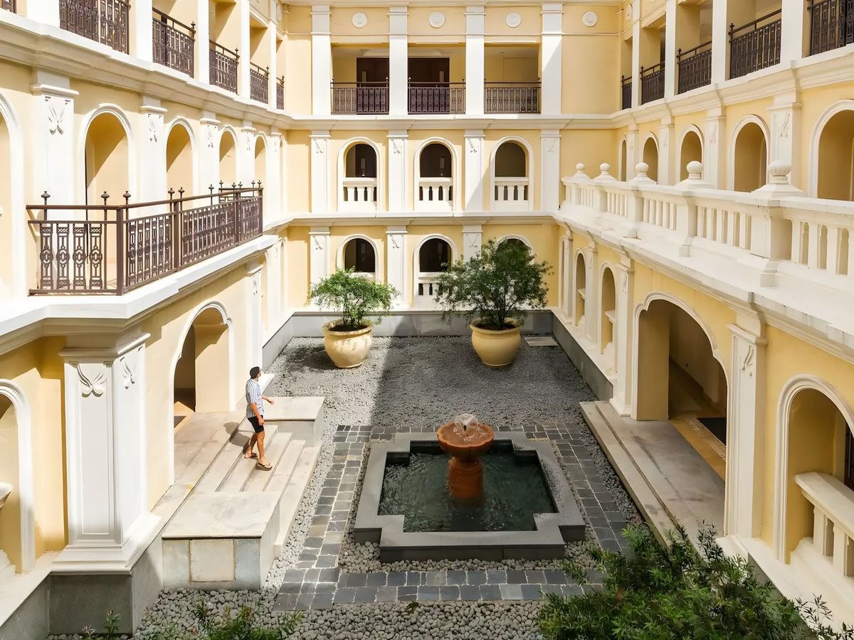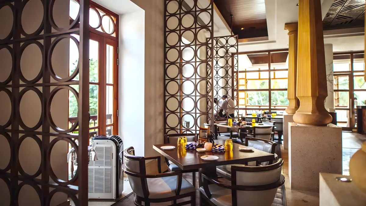 pięciogwiazdkowy, luksusowy, 313 pokoi, budynek główny i kilka budynków bocznych, lobby lounge, całodobowa recepcja, 4 restauracje: The Dining Room – dania w formie bufetu, kuchnia lokalna i międzynarodowa, The Verandah – à la carte, kuchnia włoska, Chulha – à la carte, kuchnia indyjska, Pool Bar & Grill (zamknięta w sezonie monsunowym) – à la carte, kuchnia azjatycka, 2 bary, w tym przy basenie, kawiarnia; przechowalnia bagażu, punkt wymiany walut, butik, parking; 7 sal konferencyjnych, ogród, bezpłatny internet bezprzewodowy; za opłatą: room-service, opiekunka dla dziecka (na zapytanie), usługa konsjerża, usługa prania i prasowania; akceptowane karty kredytowe: Visa, MasterCard, Diners Club, American Express.